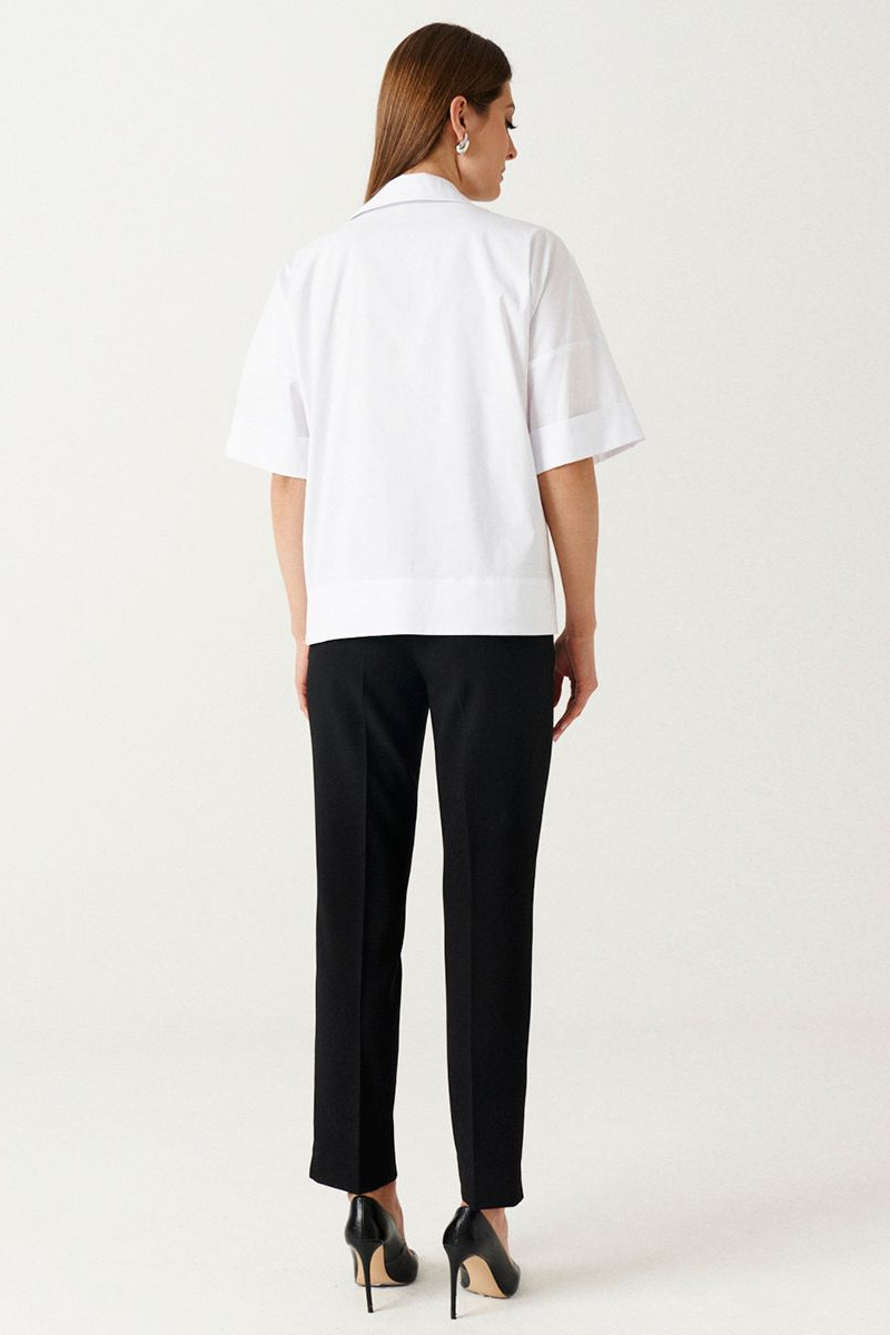 | 52 | Блузка: Длина изделия - 63см, Длина рукава - 16см, Ширина плеча - 29.5см, Ширина по груди - 63см, Ширина по низу - 63см, Ширина рукава - 24.7см; |