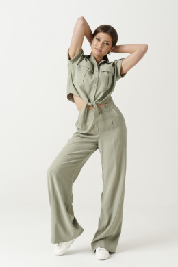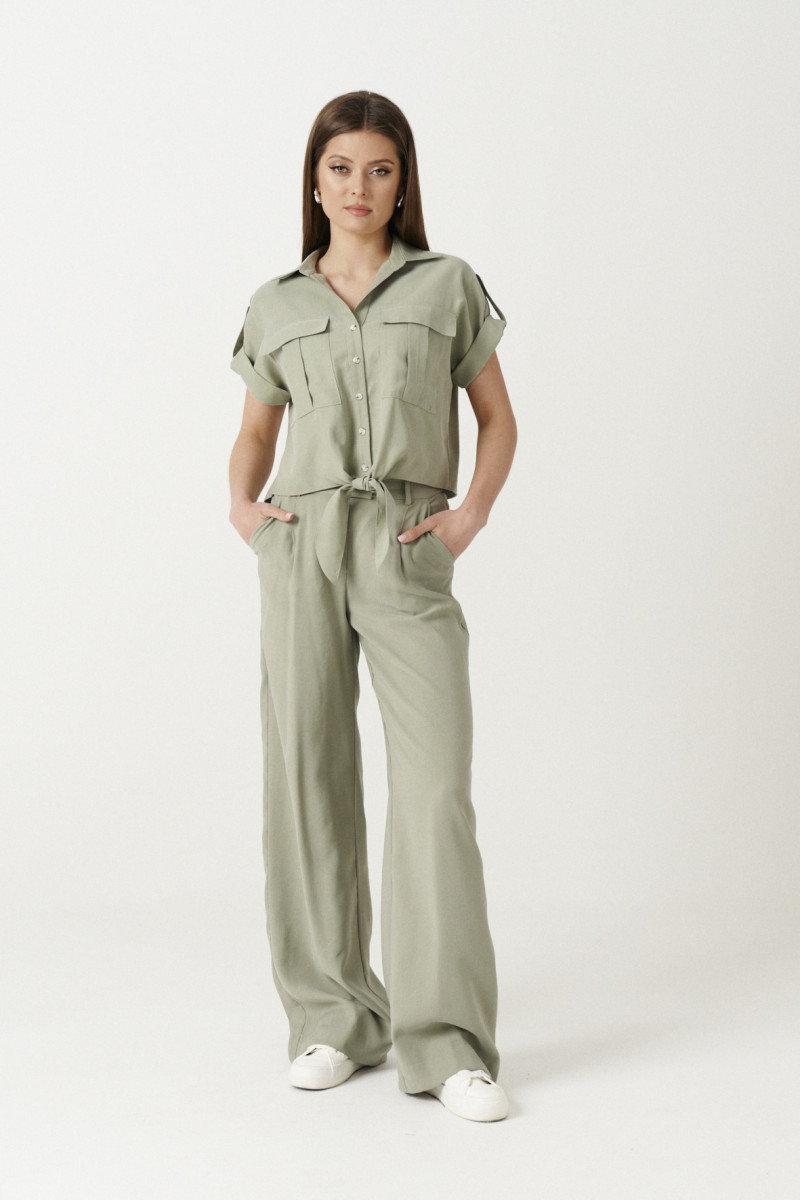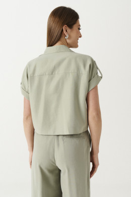 Блуза женская от бренда Ketty из улучшенной вискозы--модала. Блуза прямого силуэта, укороченная. По переду накладные карманы со встречной складкой с клапаном. Горловина оформлена воротником-стойкой. Линия плеча спущенная. Пройма оформлена отложной манжетой, которая по линии плеча крепиться патой, застёгивающаяся на петлю-пуговицу. По спинке двойная кокетка. Застёжка сквозная на петли-пуговицы. Горловина оформлена воротником-стойкой. По низу переда хвостики-завязки, которые при завязывании создают мягкие складки и добавляют свою изюминку. Все швы закрытые, что говорит о высоком качестве пошива. Прекрасный вариант рубашки для работы в офисе и на каждый день.