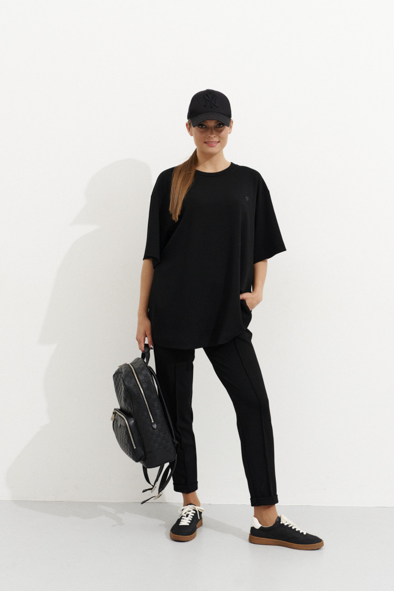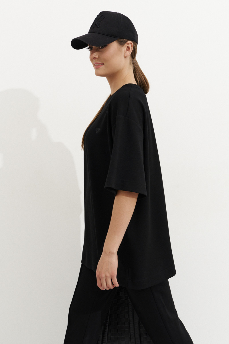 Футболка женская свободного кроя выполнена из натурального полотна.