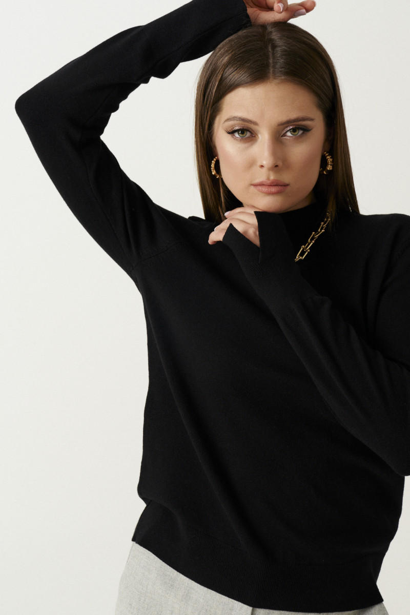 Джемпер женский из вискозной пряжи пряжи машинной вязки для повседневной носки. Джемпер прямого силуэта. Горловина обработана стойкой. Рукава чуть объемные с удлиненной манжетой, по манжете небольшой разрез.. Низ джемпера с довязом на резинке. Очень эстетичный и очарователный джемпер, который отлично подчеркнет вашу фигуру. Джемпер удобный в носке и очень комфортный к телу.