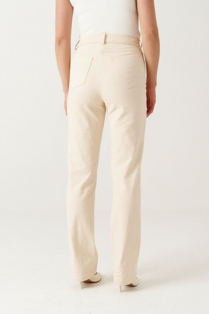 Брюки женские из джинсовой ткани с большим содержанием хлопка для повседневной носки. Брюки чуть заужены к низу. Верхний срез брюк обработан притачным поясом с застежкой на одну обметанную петлю и одну пуговицу, а также в среднем шве брюк имеется застежка на тесьму-молнию. Брюки имеют шлевки, что дает возможность носить их под ремень. Задняя часть брюк имеет отрезную кокетку, а также два накладных кармана. В боковом шве имеются карманы с подкройным бочком. Очень нежные и стильные брюки, которые обязательно очаруют вас своей идеальной посадкой. В данных брюках вы будете чувствовать себя уверенно и обязательно будете в центре всеобщего восхищения.