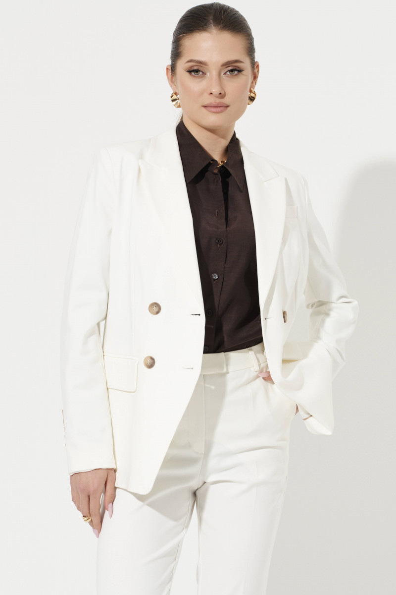 Стильный двубортный жакет с роговыми пуговицами бренда Ketty покорит вас своим полуприталенным и актуальным кроем. Пиджак выполнен из высококачественной хлопковой ткани. Жакет с лёгкостью впишется в любой гардероб и станет вашим бесспорным фаворитом. Посадка добавит силуэту пиджака изящества, а образу элегантности. Жакет средней длины, двубортный с прорезными карманами с клапанами, на рукавах имеются декоративные шлицы, которые дополняют изящные роговые пуговицы. Такой классический жакет, но с ярким акцентом на пуговицы прекрасно подойдет девушкам для вечерних образов, в офис, на работу, на свидание, на прогулку.