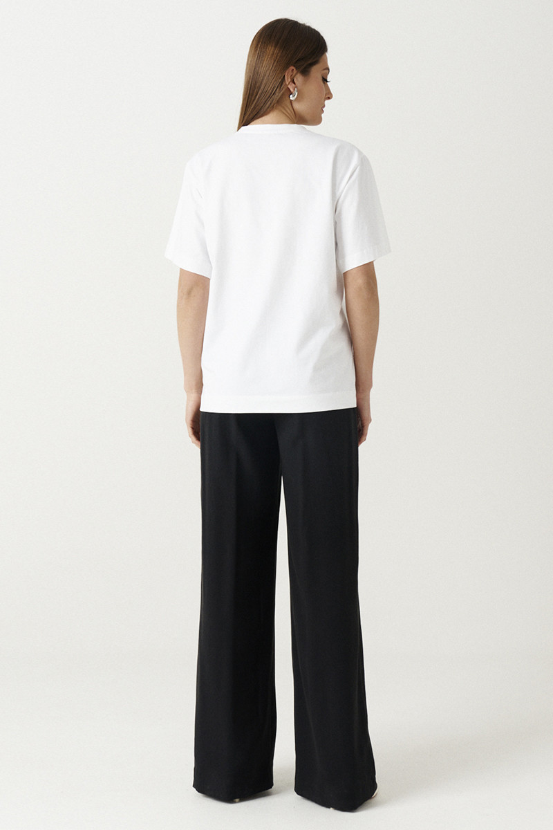Базовая футболка бренда Ketty из высококачественного хлопкового трикотажа. Модель имеет свободную посадку. Декор в виде печати придаст джемперу неповторимость. Рукав короткий, свободный. Горловина круглая, обработана притачной планочкой. Наша футболка свободного кроя подойдет для любой фигуры, как для высоких, так и для девушек и женщин среднего роста, под любой образ и стиль. Крой футболки - свободный, модный, легкий оверсайз - очень модно и стильно. Футболку с вышивкой можно носить с любой одеждой - джинсами, юбкой, костюмом. Прямой крой и дышащий материал делают её удобной и комфортной для повседневной носки, для поездок и для прогулок! Подойдёт как в офис, так и как элемент вечернего гардероба!