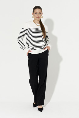 Джемпер женский из вискозной пряжи машинной вязки для повседневной носки. Джемпер прямого силуэта. По низу изделия и по низу рукава имеется довяз на резинке. Джемпер в двух монохромных цветах: черный в белую полоску и белый в чёрную полоску. Стильный и универсальный джемпер отличный вариант для вашего гардероба. В нем вы будете чувствовать себя комфортно, а главное большое содержание вискозы позволит вашей коже дышать.