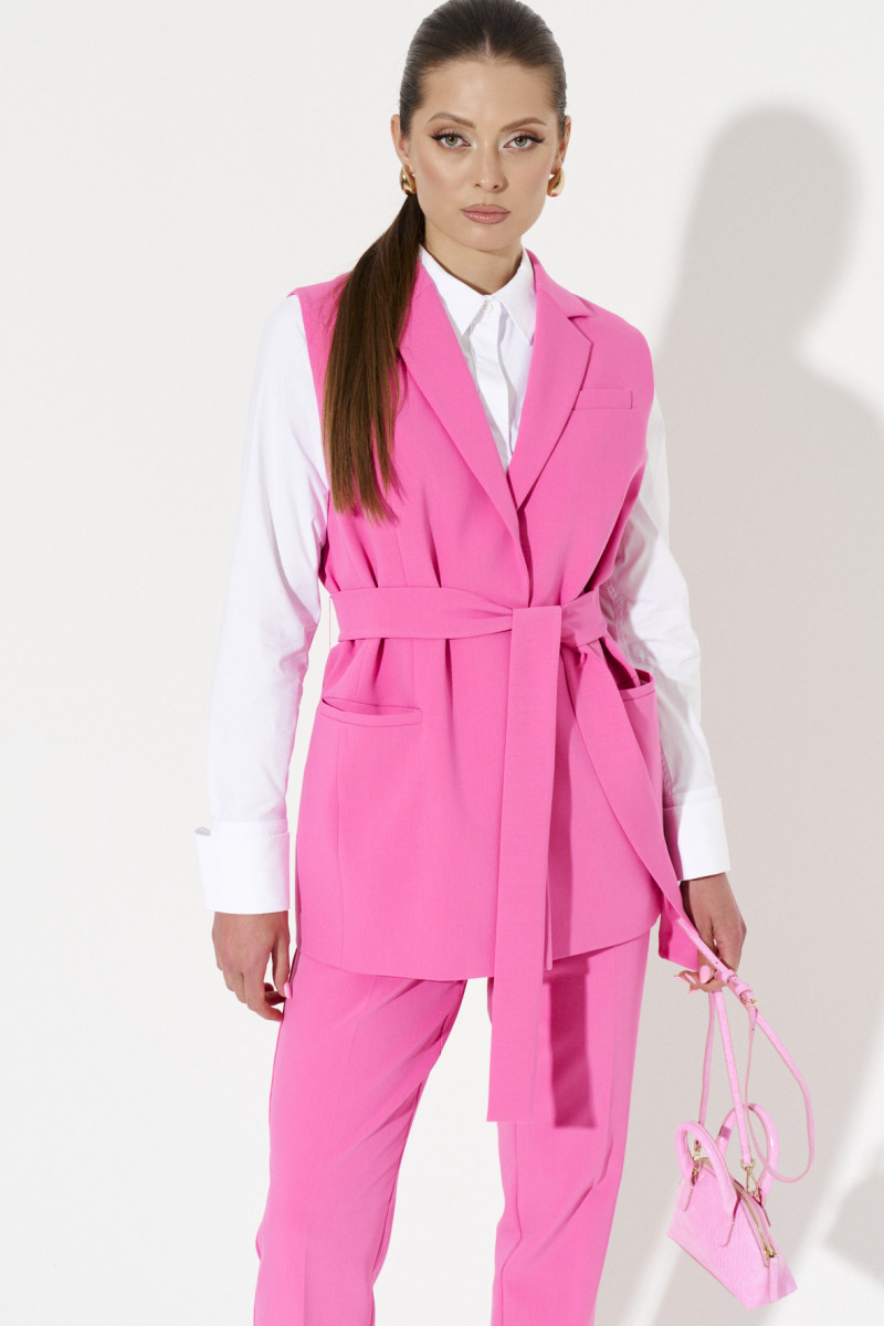 Жилет женский из поливискозной ткани для повседневной носки. Изделие полуприлегающего силуэта без рукавов. Жилет на поливискозной подкладке. Центральная бортовая застежка на петли пуговицы. По переду располагаются прорезные карманы. Длина изделия классическая. Очень красивый классический вариант жилета, который будет стильно смотреться под любой ваш образ.