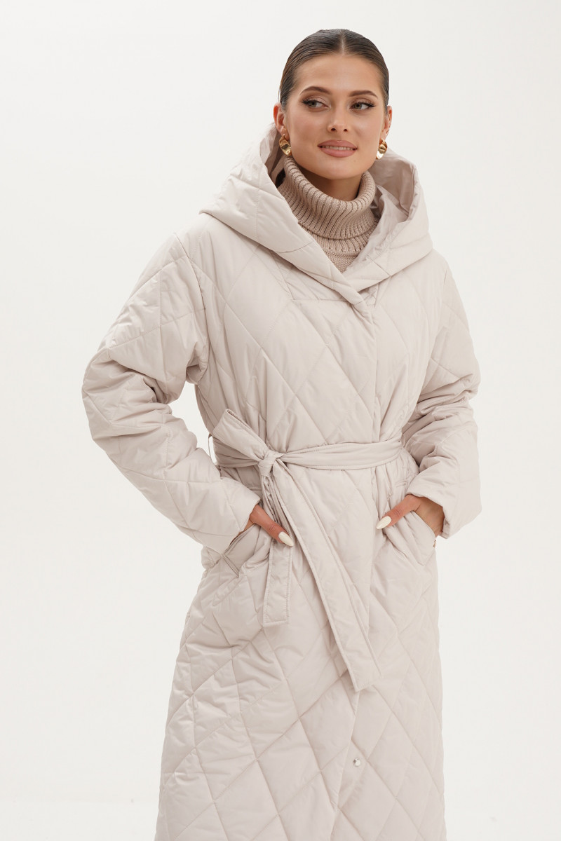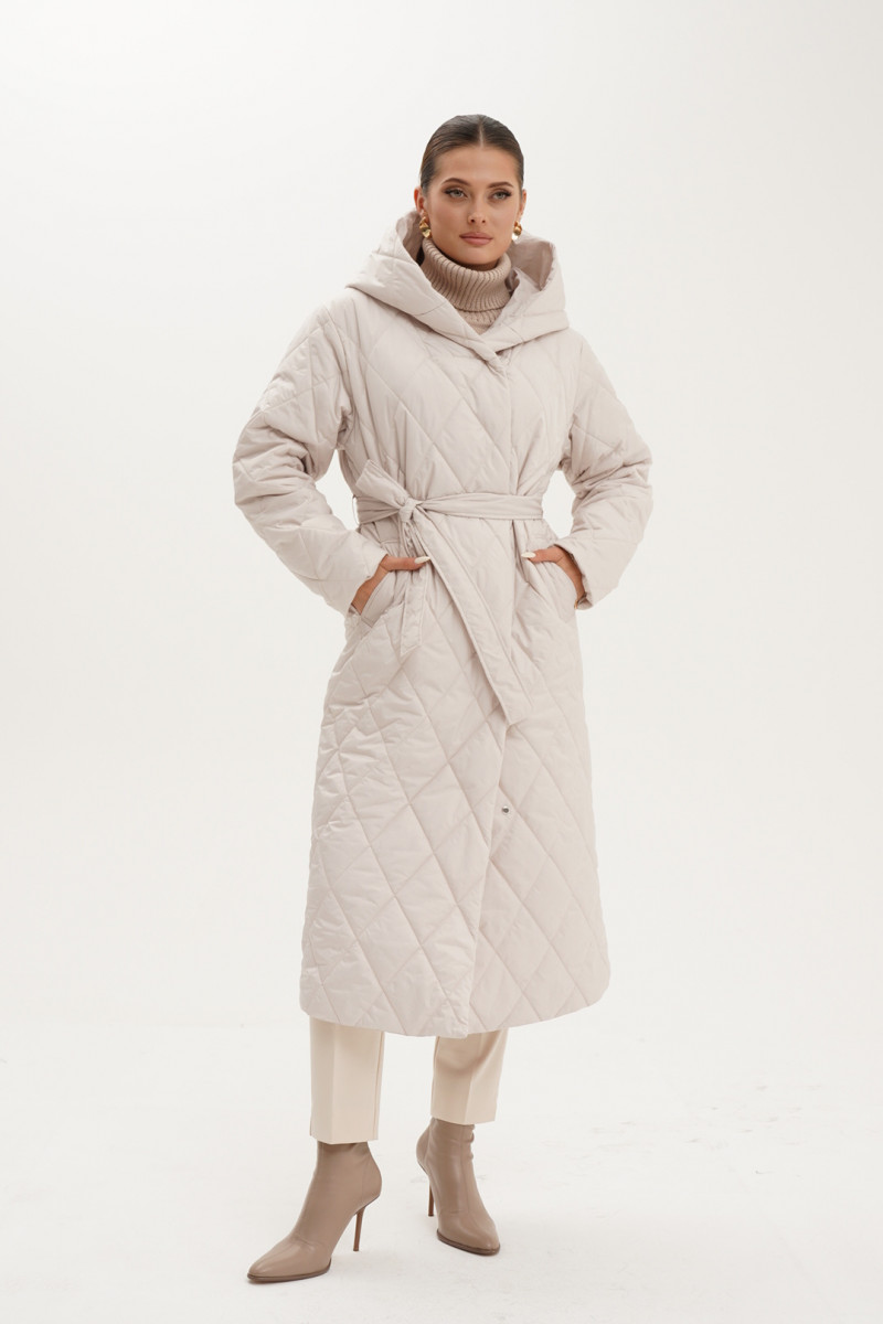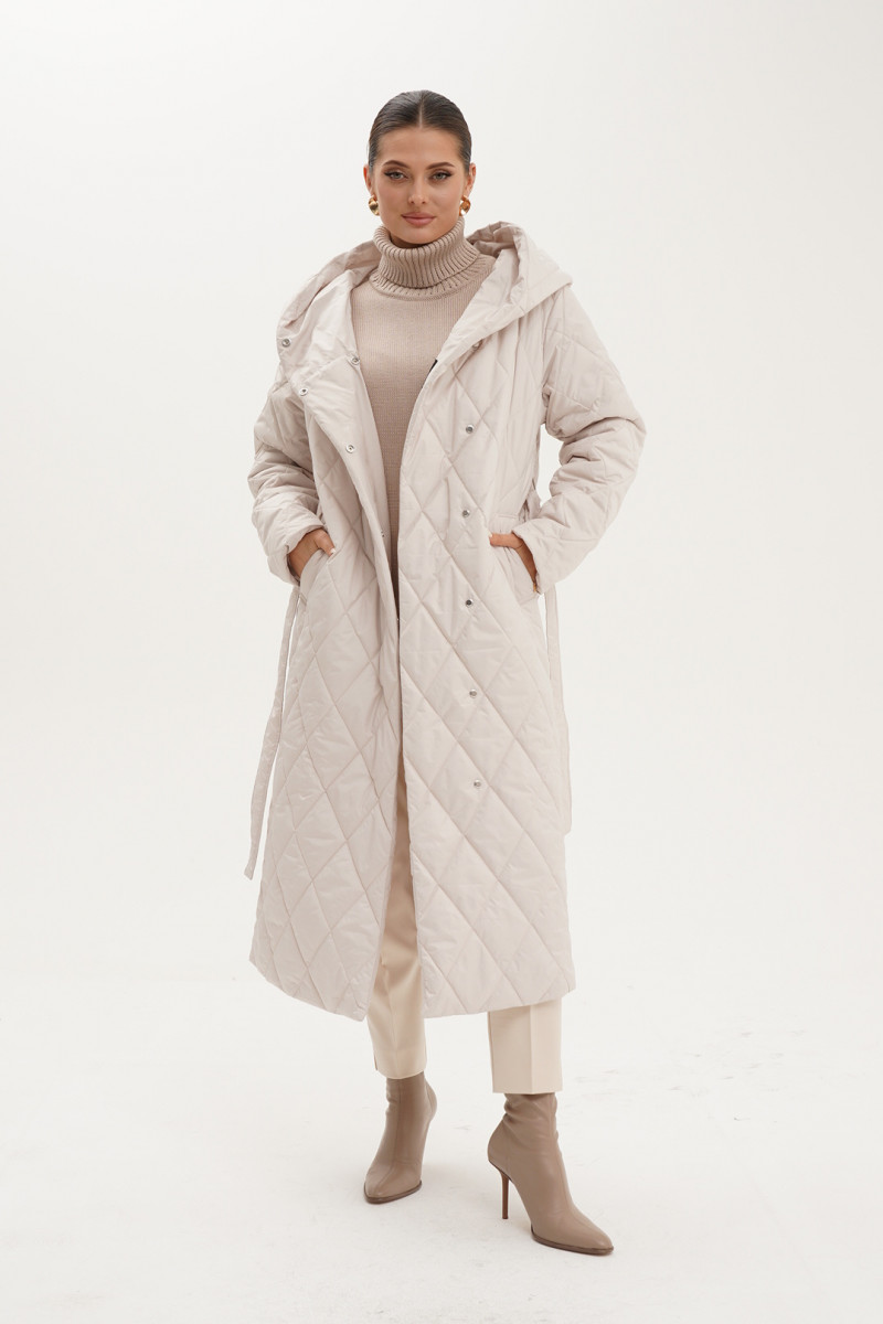 Пальто стеганое на подкладке с бельгийским утеплителем до -10C градусов, для повседневной носки прямого силуэта. Застежка в пальто на кнопки. Перед имеет два кармана. Спинка со шлицей, застежка на кнопки. Горловина обработана капюшоном. Рукава втачные длинные. Длина изделия миди. В таком пальто вы будете выглядеть стильно и чувствовать себя комфортно даже в самые холодные дни.