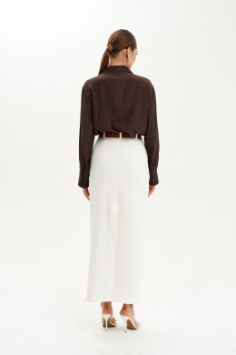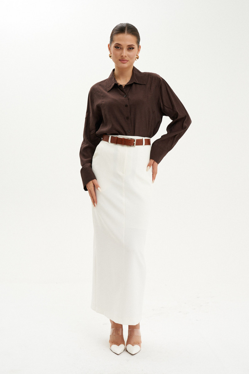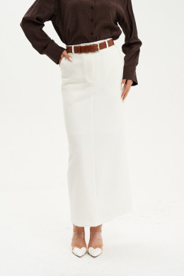 Юбка женская прямого силуэта из смесовой ткани для повседневной носки. Верхний срез юбки обработан притачным поясом, застежка на крючок, а также имеется застежка на тесьму-молнию в среднем шве юбки. В юбке расположен в боковом шве карман с подкройным бочком. Заднее полотнище юбки имеет две талиевые вытачки и два прорезных кармана в рамку с двумя обтачками, а также в среднем шве юбки располагается шлица. Юбка на поливискозной подкладке. Отличный классический вариант юбки, которая будет гармонично смотреться под любые изделия.