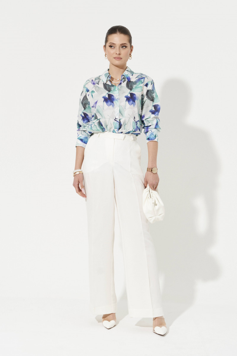Блузка женская из лёгкой хлопчатобумажной ткани для повседневной носки. Блузка прямого силуэта. Застежка на восемь обмётанных петель и восемь пуговиц. По спинке имеется кокетка с двумя складками. Горловина обработана рубашечным воротником с отрезной стойкой. Низ рукава обработана притачной манжетой, застежка на две обметанные петли и две пуговицы. Блузка станет идеальным вариантом для любой прогулки, а также разнообразит ваш образ стильным фасоном.