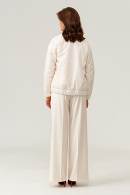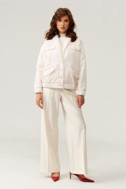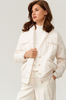 Это женская куртка на легком синтепоне, предназначенная для повседневной носки. Модель выполнена в классическом стиле с практичными деталями и аккуратным дизайном. Центральная застежка — бортовая на обметанные петли и пуговицы, обеспечивающая надежность и удобство при носке. Передняя часть украшена двумя накладными клапанами с декоративными пуговицами, а также двумя карманами с листочкой и клапанами, застегивающимися на одну обметанную петлю и пуговицу — все элементы добавляют модели стильности и функциональности. Низ изделия выполнен на резинке, что создает комфортную посадку и защищает от ветра. Воротник-шаль придает образу элегантность, а длинные втачные рукава с низом на резинке обеспечивают свободу движений и уют. Куртка на подкладке, что делает ее более удобной в носке. Цвет — молочный, универсальный и свежий, легко сочетается с различными образами.