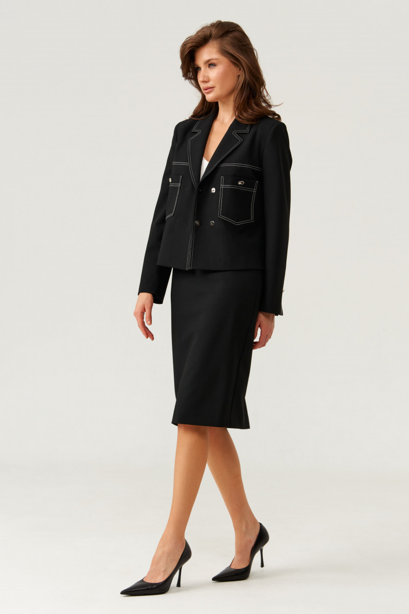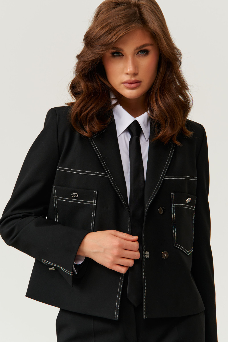 | 46 | Жакет: Длина изделия по спинке - 55см, Длина рукава - 62см, Ширина плеча - 12.8см, Ширина по груди - 52см, Ширина по низу - 53см, Ширина рукава вверху - 19см, Ширина рукава внизу - 14.3см, Ширина спинки - 38.5см; |
