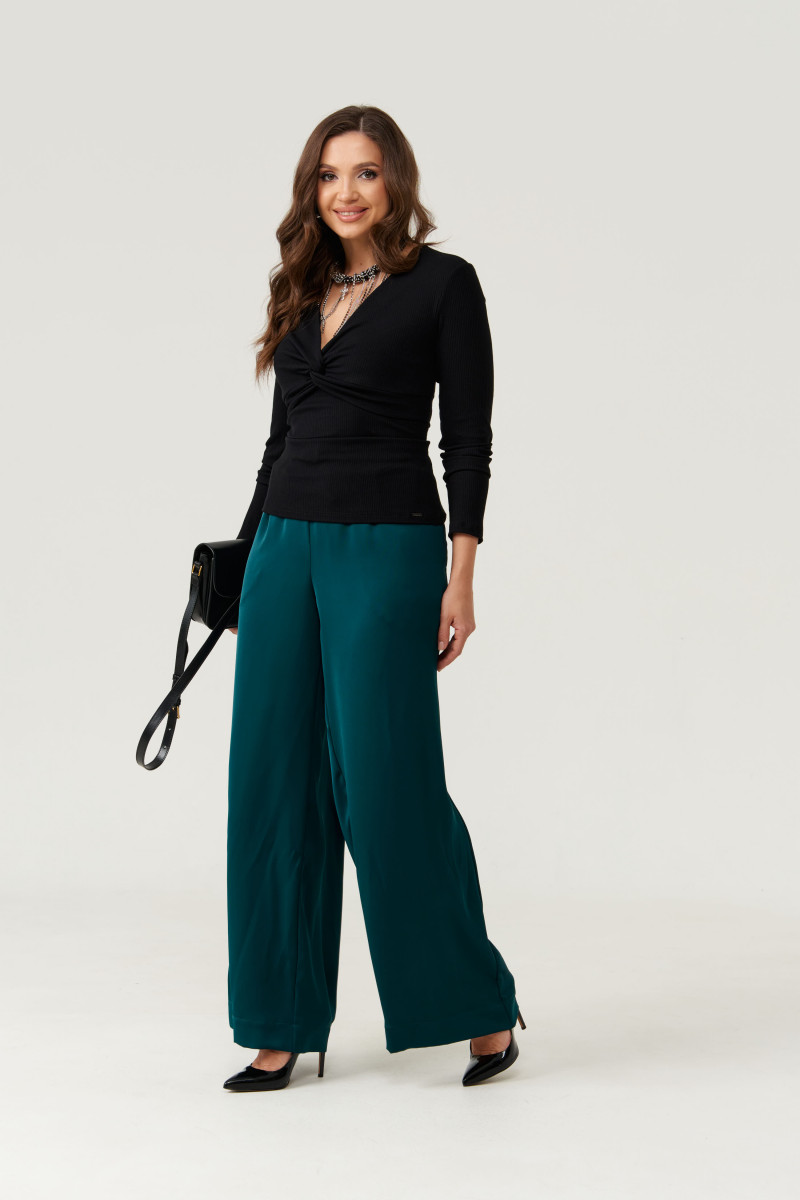 | 56 | Брюки: Высота посадки - 33.5см, Длина брюк с поясом - 114см, Длина по внутреннему шву - 82см, Ширина брючин сверху - 82см, Обхват брюк по низу - 72см, Ширина по бедрам - 70см, Ширина по талии - 45см; |