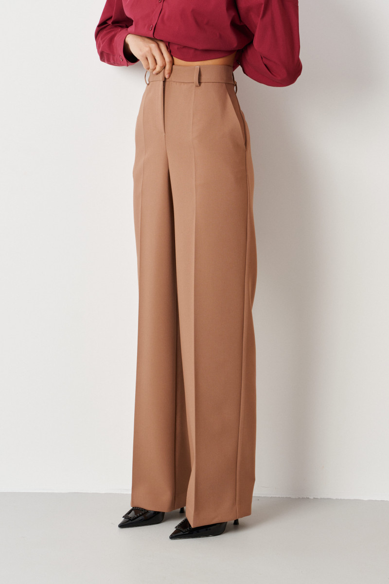 | 44 | Брюки: Высота посадки - 31см, Длина брюк с поясом - 116см, Длина по шаговому шву - 86см, Ширина брючин сверху - 65см, Обхват брюк по низу - 54.5см, Ширина по бедрам - 48см, Ширина по поясу - 38.5см; |