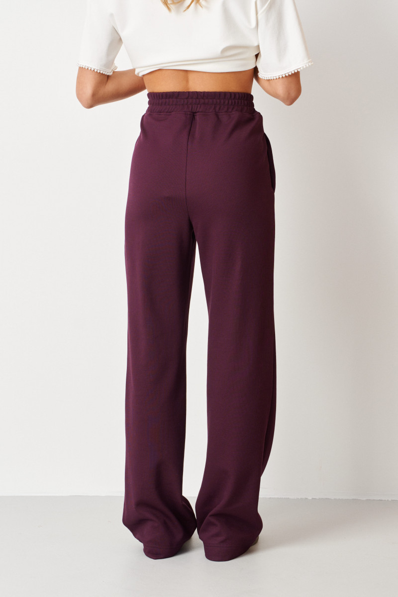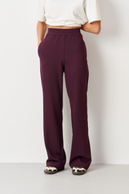 Бордовый оттенок придает образу изысканность и стильность, делая эти брюки универсальным элементом гардероба, который легко сочетать с различными топами, блузками и обувью. Они идеально подойдут как для повседневных прогулок, так и для более неформальных встреч или работы.