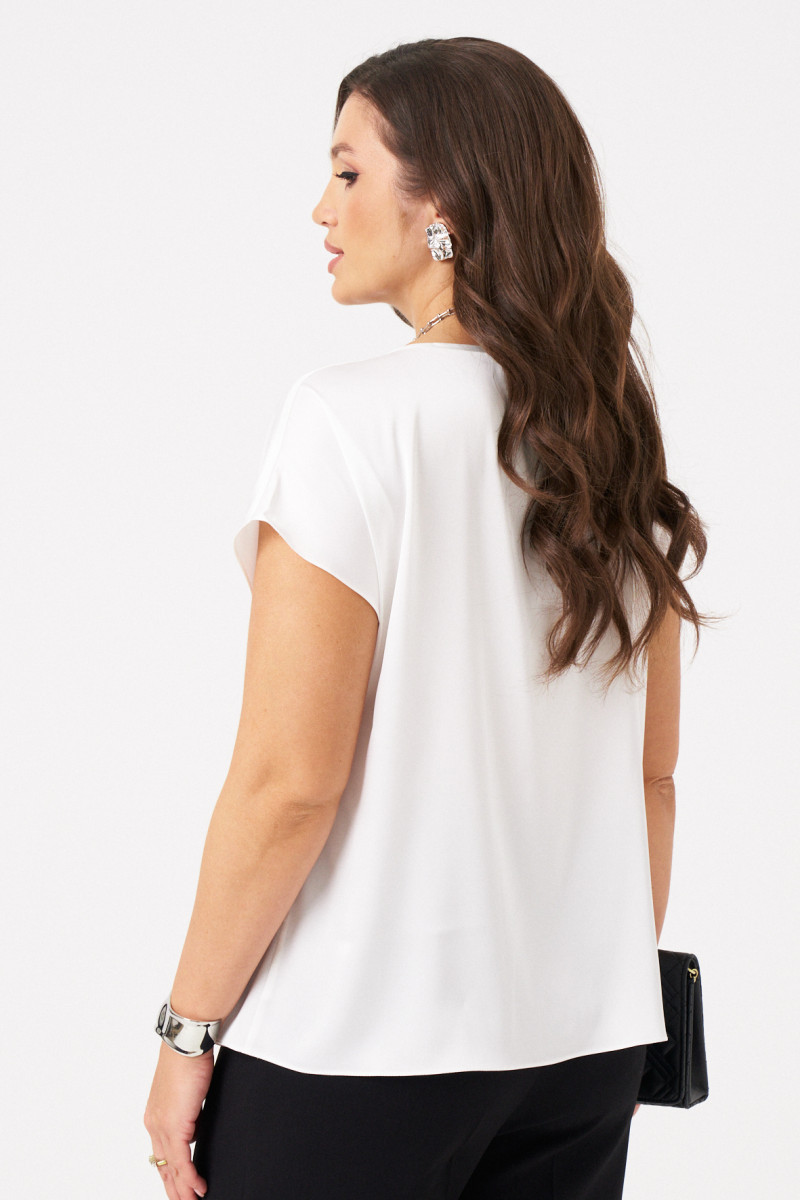 Эта женская базовая блуза прямого силуэта молочного оттенка — универсальный и стильный выбор для вашего гардероба. Она отлично сочетается с юбками, брюками и джинсами, создавая разнообразные образы для повседневной носки. Легкая и комфортная, блуза выполнена из приятной на ощупь ткани с гладкой поверхностью, которая не парит даже в жаркую погоду. Свободный крой с опущенной линией плеча и короткими цельнокроеными рукавами обеспечивает безупречную посадку и комфорт. Обработанная узкой планкой горловина придает изделию аккуратный вид. Ее легко стирать в машинке, она быстро сохнет и сохраняет форму после стирки. Купите эту блузу и создавайте множество стильных образов для любого дня!