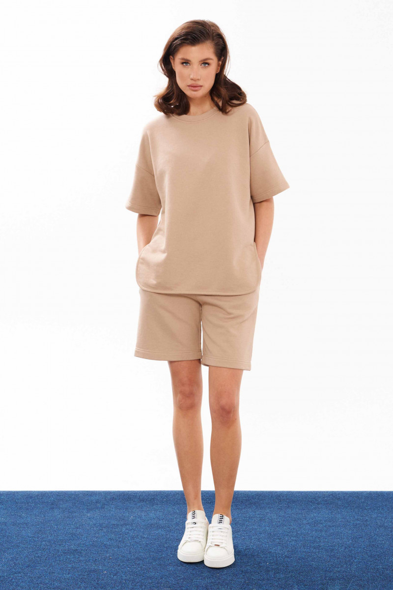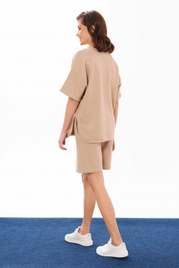 Блузка женская из трикотажной смесовой ткани для повседневной носки. Блузка прямого силуэта. Низ переда и спинки криволинейный, низ изделия обработан внутренней окантовкой. Горловина округлая. Линия плеча чуть спущена. Рукава втачные, длинной до линии локтя. Блузка с большим содержанием хлопка, что позволит вашей коже дышать. Удобная и практичная блузка, которая позволит вам выглядеть стильно, а главное вы всегда сможете комбинировать ее под разные образы.