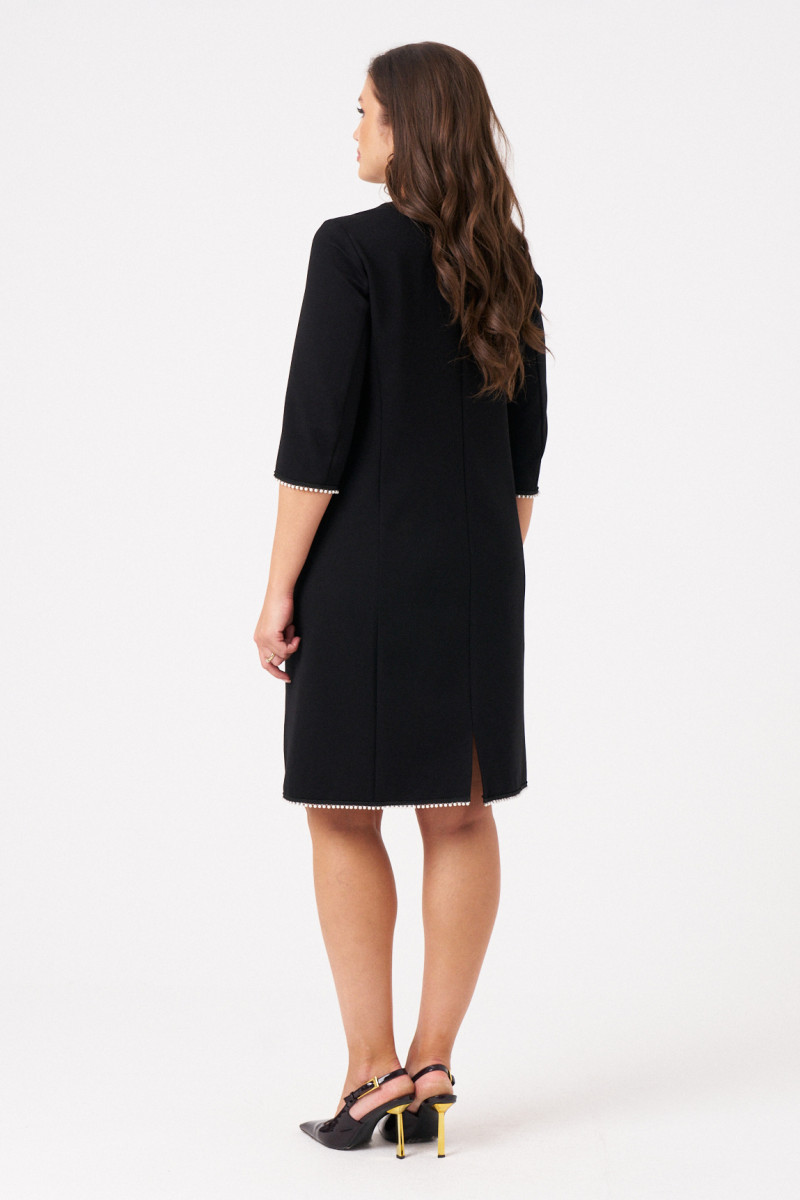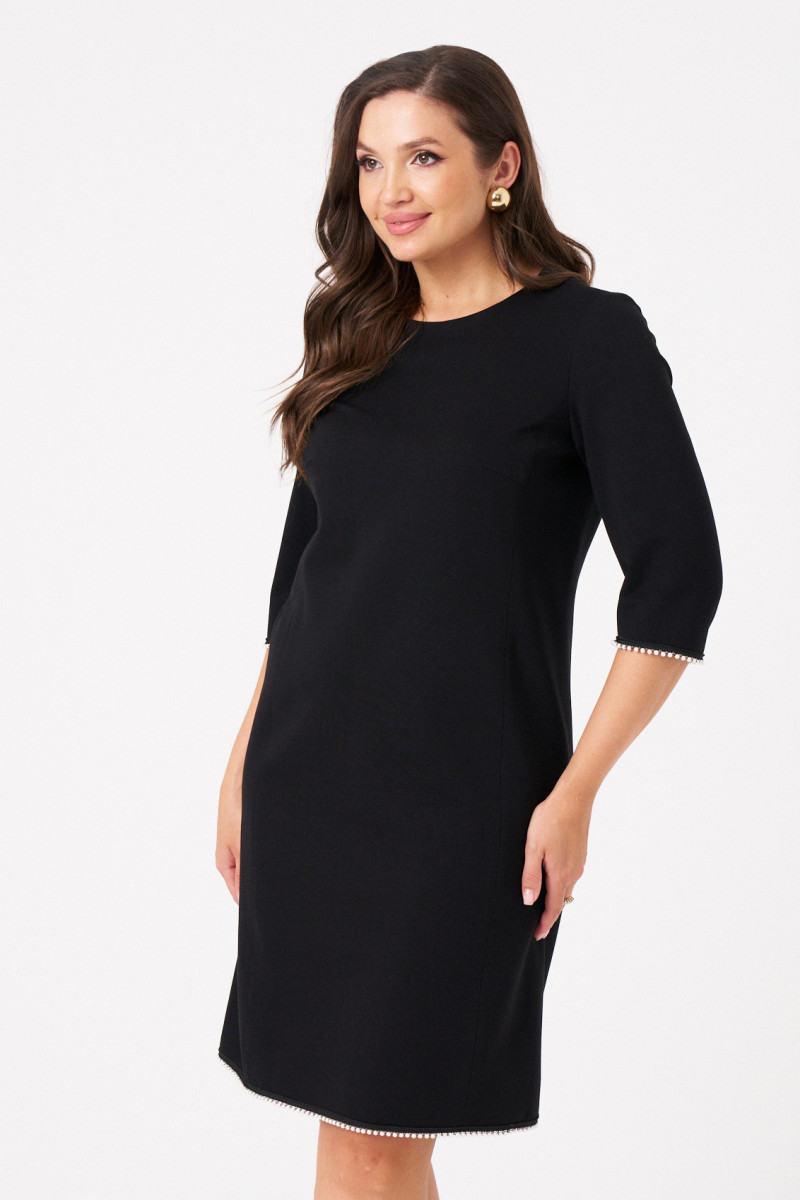 Платье из вискозного трикотажного полотна длиной выше колена – идеальный выбор для женщины, которая ценит стиль, комфорт и элегантный стиль. Это вечернее платье представлено в том числе и в больших размерах.Модель создана для демисезонного периода, поэтому в нем будет комфортно как в осеннюю прохладу, так и в теплые офисные помещения. По переду и спинке проходят два рельефа, подчеркивающие линии силуэта, что придает платью нарядный и утонченный вид. В центральном шве спинки предусмотрена потайная молния, что делает посадку удобной, а разрез добавляет изделию кокетливую нотку. Особое внимание привлекает декоративная тесьма с контрастным жемчугом, которая украшает низ рукавов и подол платья, делая его особенно стильным и модным. Такое решение добавляет изысканности и подчеркивает нарядный характер изделия. Платье идеально подходит для коктейльных вечеринок, новогодних праздников или корпоративных мероприятий. Однако его базовый чёрный оттенок и универсальность позволяют использовать его и в повседневной жизни для офисных или деловых встреч.