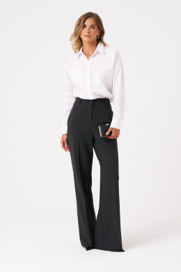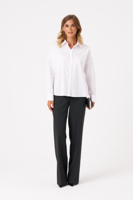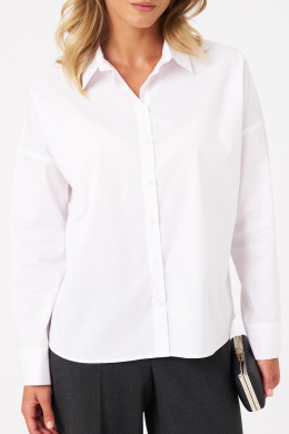 Блузка офисная свободного кроя со спущенной линией плеча. Перед с воротником-стойкой и V-образным вырезом, подчеркнутым блестящими пуговицами на центральной застежке. Блузка летняя женская украшает аккуратный закругленный низ, разрезы в боковом шве и удлиненная спинка с пришивной кокеткой и складкой. Это обеспечивает идеальную посадку на плечах.