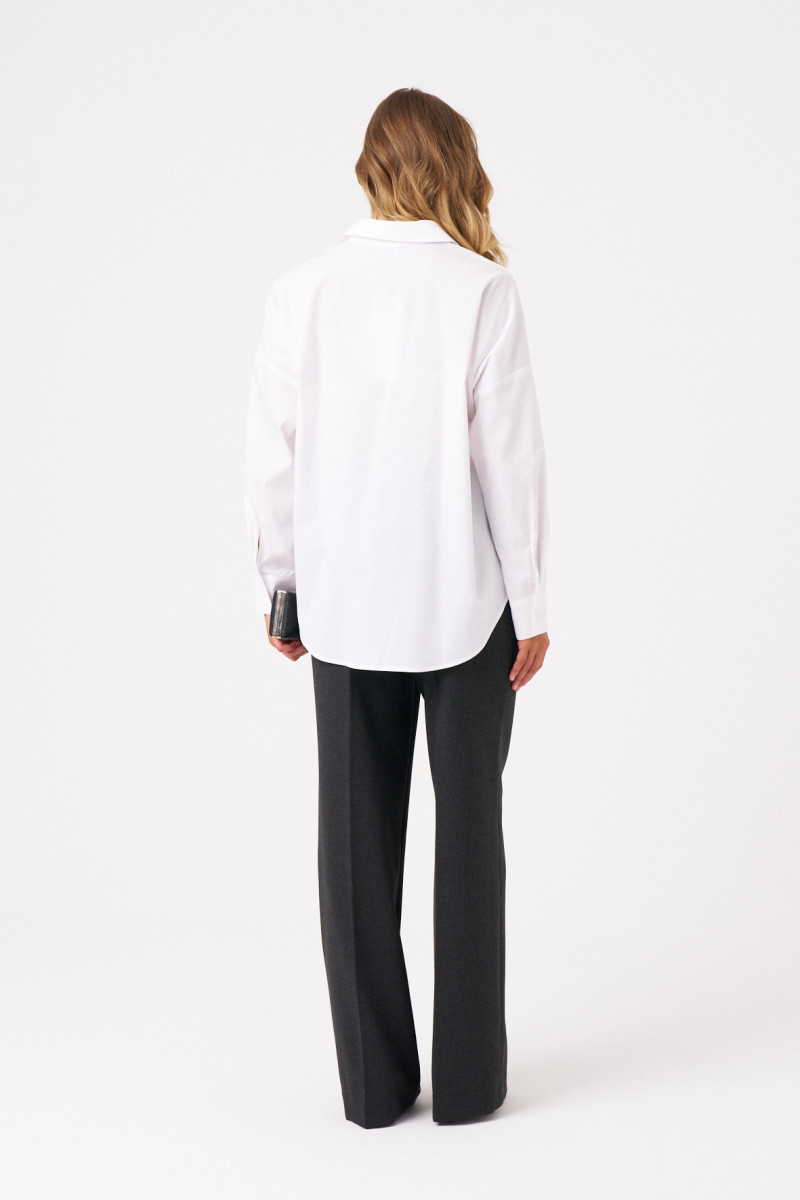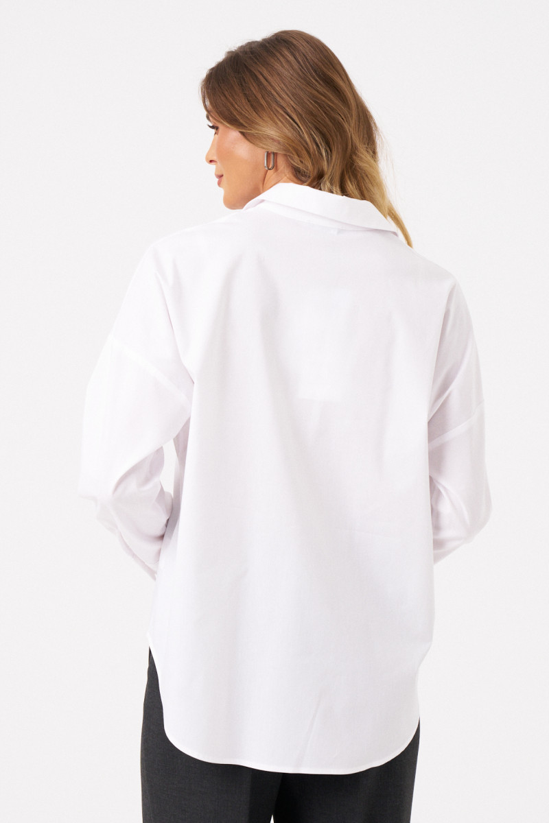 Однотонная рубашка-блузка с рукавами длиной 3/4 на манжетах представлена в нескольких расцветках. Блузка белого цвета сочетается с различными вещами. Она разнообразит ваш повседневный гардероб, деловые и праздничные образы. Блузка на пуговицах женская универсальна, ее можно носить и зимой, и летом. Оверсайз блузка подойдет для работы и отдыха.
