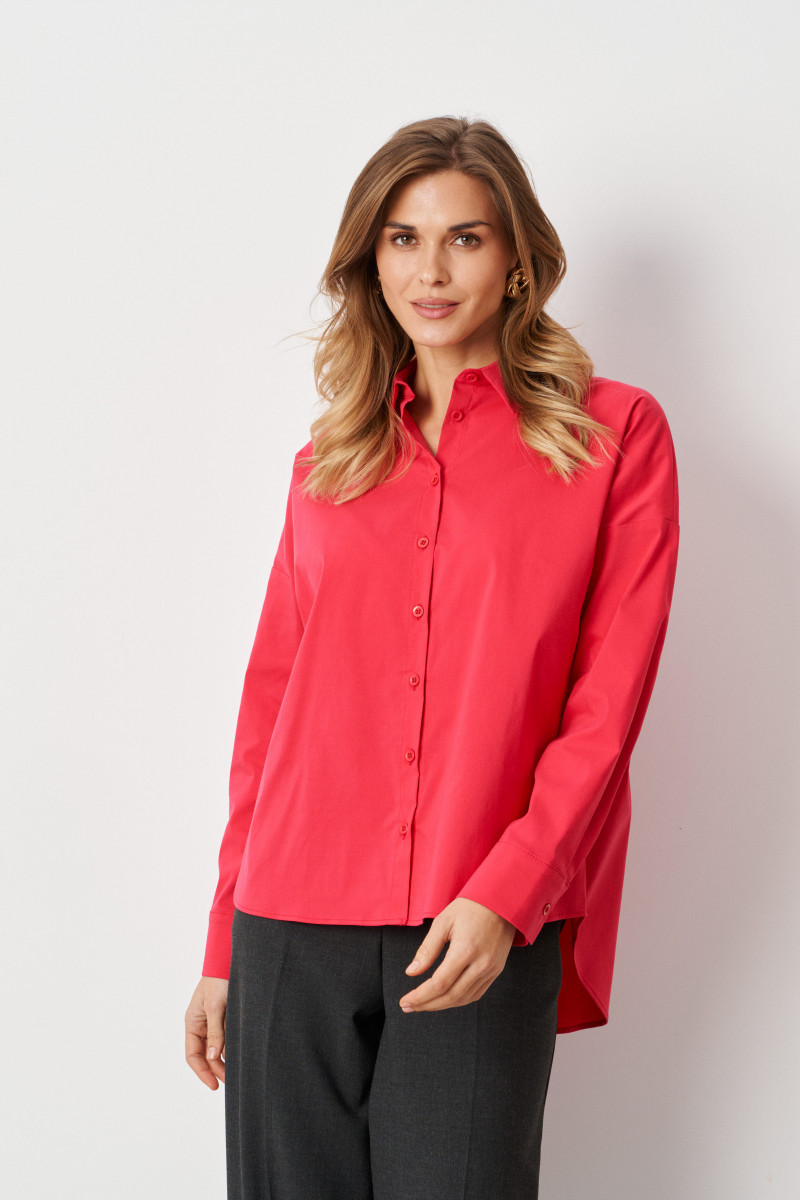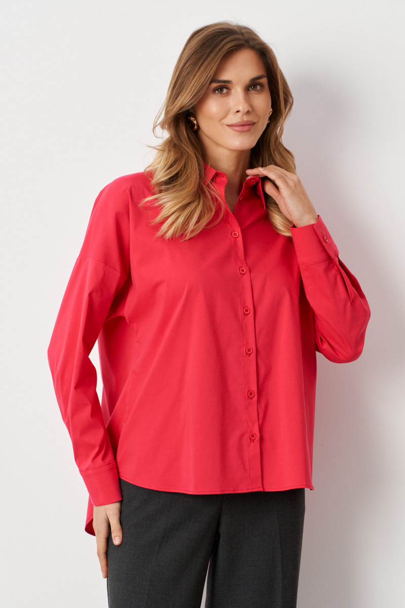 Однотонная рубашка-блузка с рукавами длиной 3/4 на манжетах представлена в нескольких расцветках. Блузка красного цвета сочетается с различными вещами. Она разнообразит ваш повседневный гардероб, деловые и праздничные образы. Блузка на пуговицах женская универсальна, ее можно носить и зимой, и летом. Оверсайз блузка подойдет для работы и отдыха.