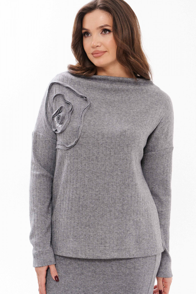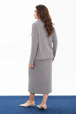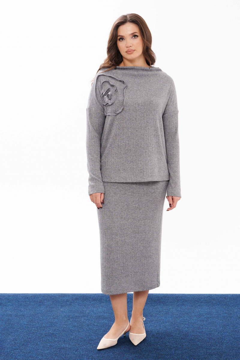 Комплект женский из поливискозного трикотажного полотна для повседневной носки. Комплект состоит из джемпера и юбки. Джемпер прямого силуэта. Перед имеет дизайнерский декор в виде цветка со стразами. Горловина расширенная. Линия плеча опущена. Рукава втачные длинные. Юбка прямого силуэта. Верхний срез юбки обработан притачным поясом на резинке, что обеспечит отличное облегание для любой фигуры. Длина юбки чуть ниже колена. Стильный и практичный комплект, который обязательно будет красиво смотреться на вас и подчеркивать все изящество вашей фигуры.