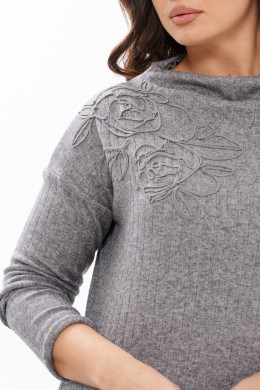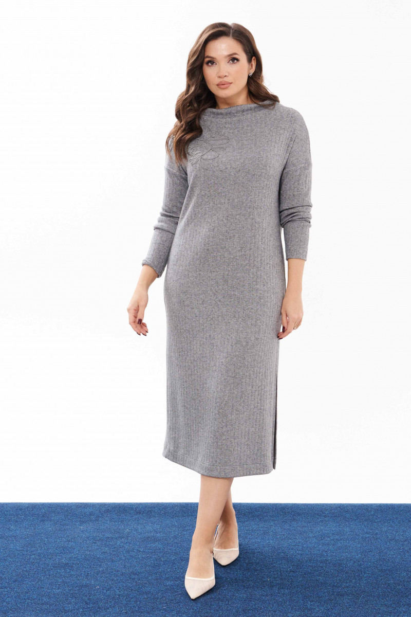Платье женское из поливискозного трикотажного полотна для повседневной носки.Платье прямого силуэта. Перед имеет дизайнерский декор в виде цветка вышитого из шнура. Горловина расширенная. Линия плеча спущена. Рукава втачные длинные. Длина платья миди. Стильное и очень комфортное платье, которое обязательно будет красиво смотреться на вас и подчеркивать все изящество вашей фигуры.