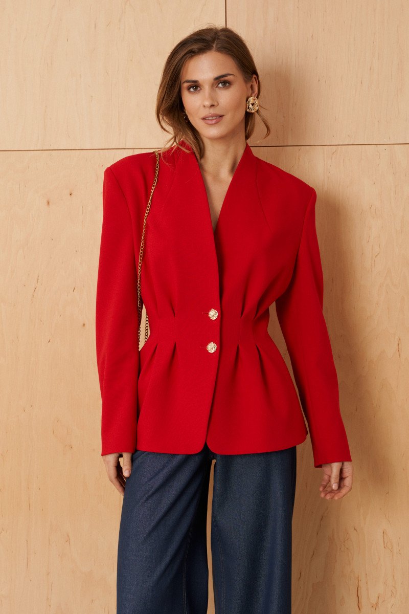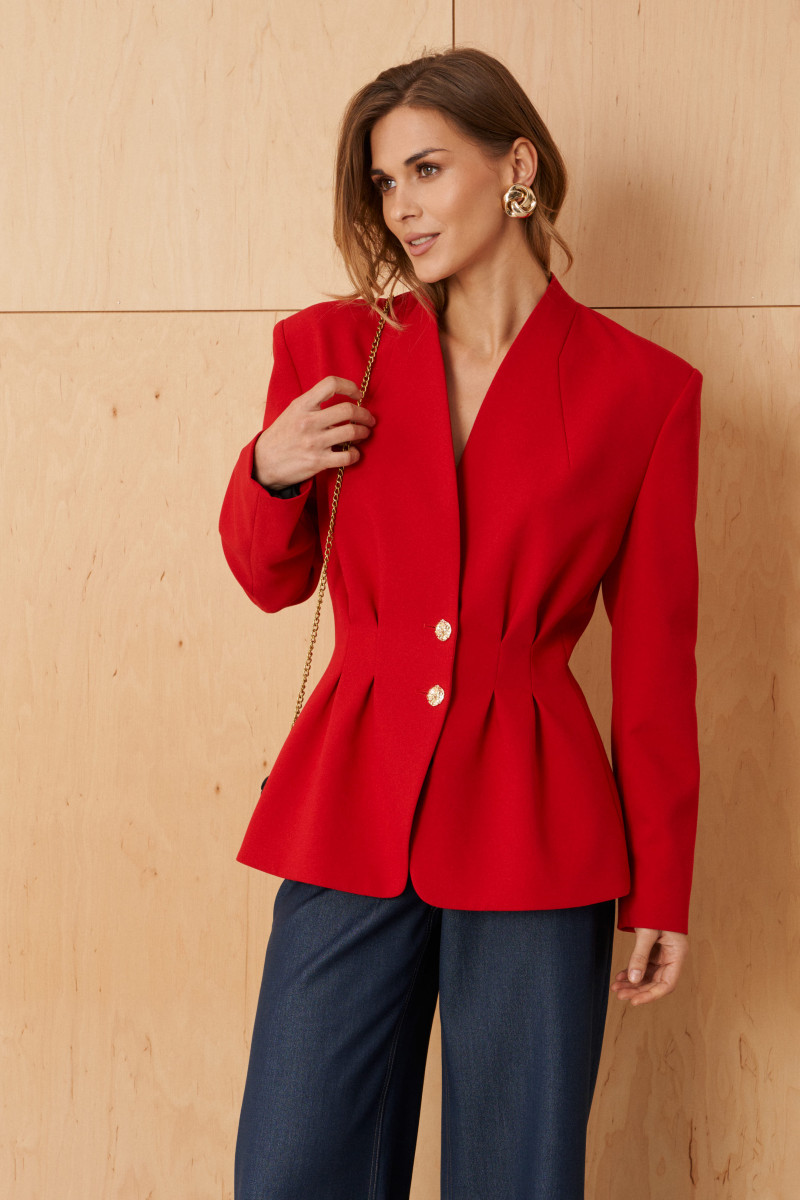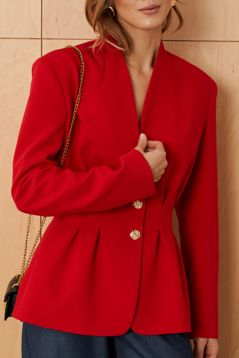 | 42 | Жакет: Длина изделия по спинке - 66см, Длина рукава - 62см, Ширина плеча - 14.3см, Ширина по груди - 50см, Ширина по низу - 66см, Ширина по талии - 39см, Ширина рукава - 17.5см, Ширина рукава внизу - 13.3см; |