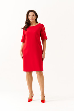 Это стильное платье насыщенного красного оттенка выполнено из мягкой и приятной на ощупь поливискозной ткани, которая идеально подходит как для повседневных, так и для торжественных образов. Полуприлегающий силуэт подчеркивает женственные формы, сохраняя при этом комфорт и свободу движений. Передняя часть модели украшена двумя аккуратными нагрудными вытачками, а расширенная горловина придает образу легкости и изящества. В боковых швах скрыты потайные карманы, которые добавляют удобства и практичности. Особый акцент создают рукава реглан с утонченной вышивкой и вставками из сетки, благодаря которым платье выглядит оригинально и изысканно. Длина рукава чуть ниже локтя. Такое сочетание лаконичного кроя и декоративных деталей делает модель универсальной и современной, идеально подходящей для различных ситуаций — от прогулок до праздничных мероприятий.