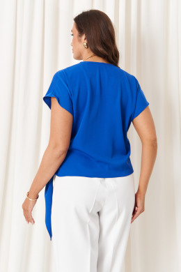 Женская блузка из струящейся ткани бежевого оттенка идеально сочетает элегантность и комфорт, делая её отличным выбором для повседневного использования. Модель выполнена на запах, что обеспечивают универсальность и приятные ощущение при носке. Передняя часть украшена изящными складками, расположенными в плечевом шве, а также дополнительной складкой, создаваемой за счёт передней детали, продетой через перемычку, что придаёт изделию особый стиль и объем. Вырез горловины V-образный, он подчёркивает линию шеи и добавляет образу нежности и женственности. Короткие цельнокроеные рукава дополняют гармоничный и лаконичный дизайн. Этот оригинальный и стильный вариант блузки станет прекрасным дополнением повседневного гардероба, подходя для различных ситуаций и легко сочетаясь с различными аксессуарами и поясками.