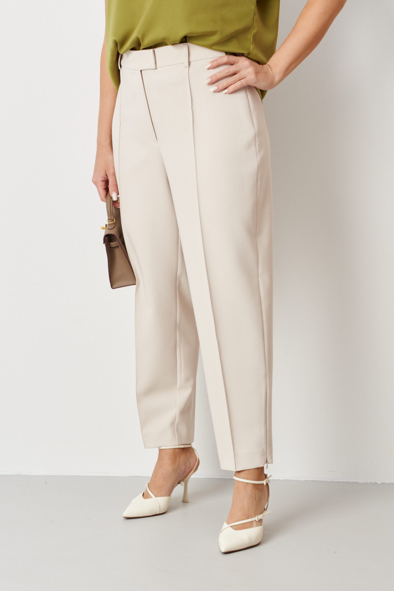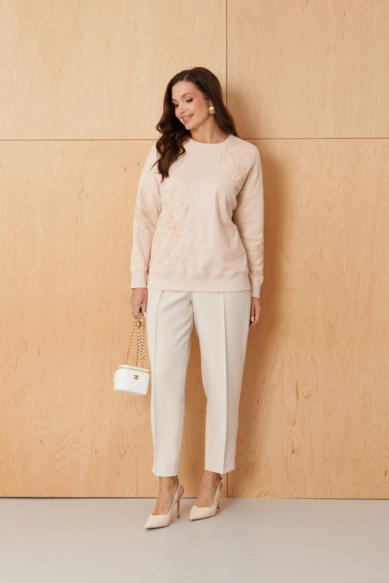 Женские брюки из поливискозной ткани представлены в классическом бежевом цвете, который легко сочетается с любыми оттенками верхней одежды и аксессуарами. Модель выполнена с притачным поясом, дополненным шлёвками для возможности носить их с ремнём или без него, что обеспечивает универсальность и индивидуальный подход к стилю. Застежка расположена в среднем шве и включает в себя крючок и молнию, гарантируя удобство использования и аккуратную посадку по фигуре. Передняя часть брюк украшена застроченной стрелкой, добавляющей строгости и элегантности силуэту, а задняя часть оснащена двумя талиевыми вытачками для оптимального прилегания и комфорта. В боковом шве расположен карман с подкройным бочком, сочетающий практичность и лаконичный дизайн, а также по низу располагается потайная застежка молния. Универсальность модели позволяет носить её как в деловой обстановке, сочетая с блузками и пиджаками, так и в повседневных образах с футболками, свитерами или свободными топами. Идеальный вариант для тех, кто ценит комфорт, стиль и функциональность в одной вещи.