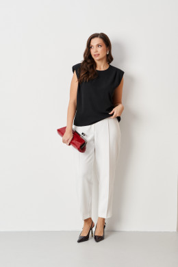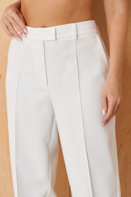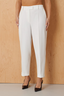Женские брюки из поливискозной ткани представлены в классическом молочном цвете, который легко сочетается с любыми оттенками верхней одежды и аксессуарами. Модель выполнена с притачным поясом, дополненным шлёвками для возможности носить их с ремнём или без него, что обеспечивает универсальность и индивидуальный подход к стилю. Застежка расположена в среднем шве и включает в себя крючок и молнию, гарантируя удобство использования и аккуратную посадку по фигуре. Передняя часть брюк украшена застроченной стрелкой, добавляющей строгости и элегантности силуэту, а задняя часть оснащена двумя талиевыми вытачками для оптимального прилегания и комфорта. В боковом шве расположен карман с подкройным бочком, сочетающий практичность и лаконичный дизайн, а также по низу располагается потайная застежка молния. Универсальность модели позволяет носить её как в деловой обстановке, сочетая с блузками и пиджаками, так и в повседневных образах с футболками, свитерами или свободными топами. Идеальный вариант для тех, кто ценит комфорт, стиль и функциональность в одной вещи.