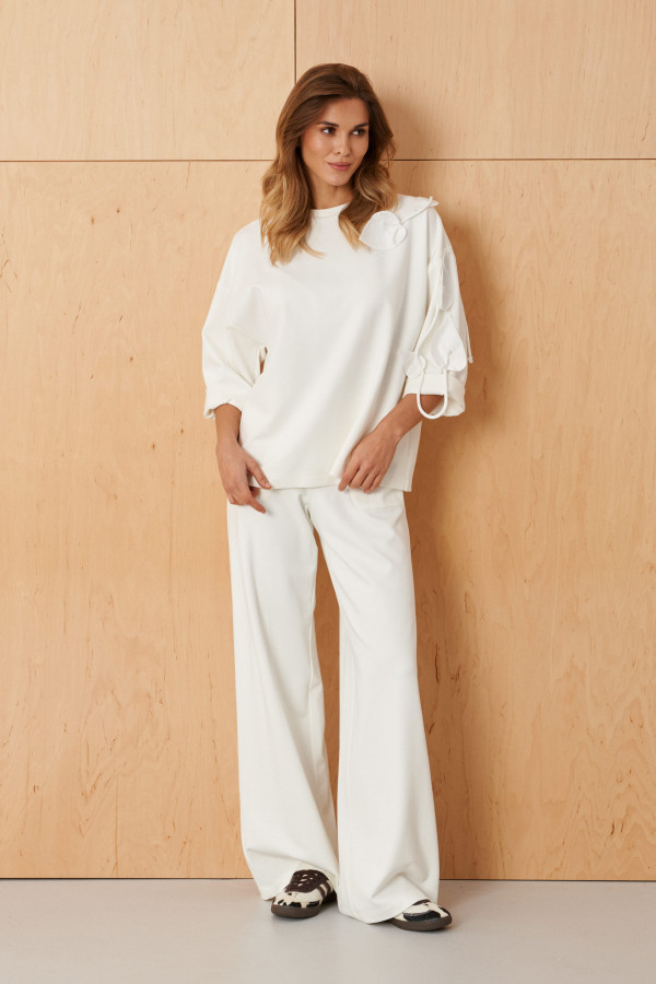 Данные женские брюки выполнены из мягкой вискозной ткани, что обеспечивает приятное ощущение и комфорт при носке. Верхний срез брюк оформлен притачным поясом, дополненным вставкой на резинке в задней и боковых частях, что позволяет добиться идеальной посадки и свободы движений. В задней части брюк расположены две талиевые вытачки, придающие форму и подчёркивающие линию талии. Задние карманы с листочками добавляют изделию эстетическую завершенность и функциональность, а боковой шов с карманом с подкройным бочком обеспечивает дополнительную практичность. Брюки заужены к низу, создавая современный и стройный силуэт. Застежка выполнена на крючок и молнию, расположенные в среднем шве, что обеспечивает удобство и надежность в использовании. В комплект входит пояс, который можно использовать для дополнения образа или для дополнительной регулировки посадки. Цвет брюк — капучино, универсальный и легко сочетаемый с другими предметами гардероба, делая их подходящим вариантом для повседневных и деловых образов.