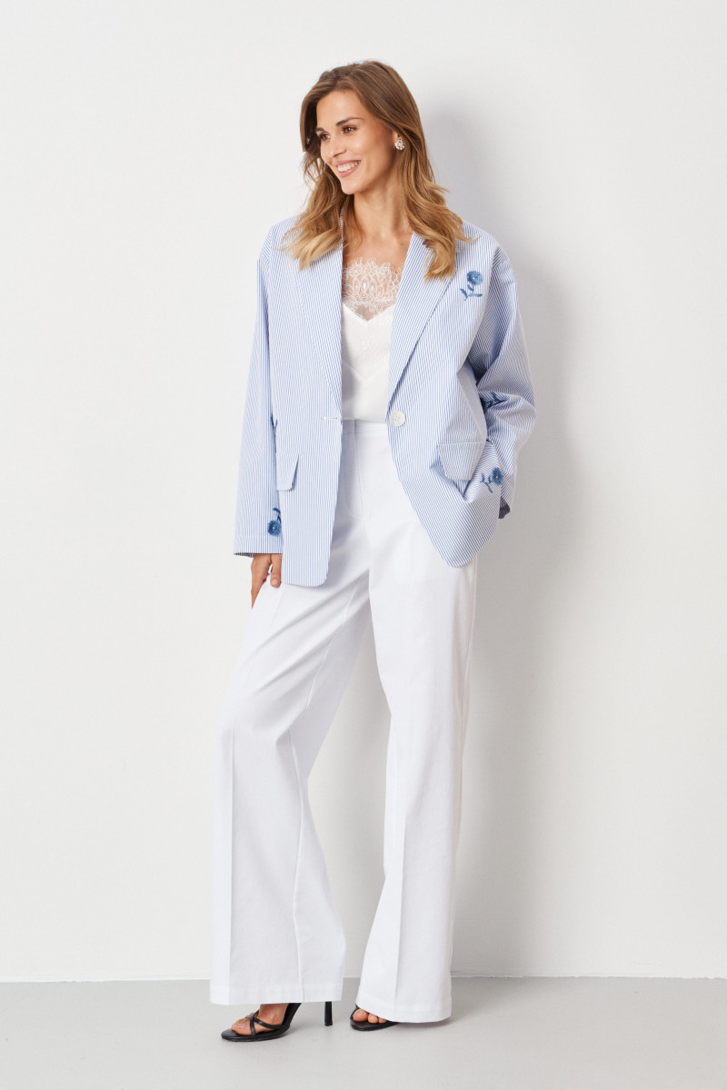 | 44 | Брюки: Высота посадки - 27,5см, Длина брюк без пояса - 108см, Длина по внутреннему шву - 84см, Ширина брючин сверху - 65см, Обхват брюк по низу - 60,5см, Ширина по бедрам - 48,5см, Ширина по талии - 35,5см; |