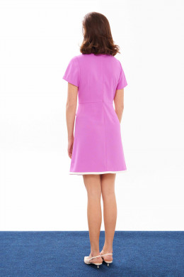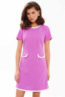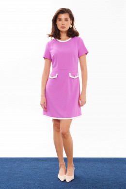 Платье женское из поливискозной ткани для повседневной носки. Платье полуприлегающего силуэта. Платье отрезное по линии талии. Лиф переда имеет две нагрудные вытачки. Переднее полотнище юбки имеет две талиевые вытачки и два клапана с окантовкой другого цвета. Клапаны украшают оригинальные пуговицы в золотом цвете.Горловина круглая обработана кантом другого цвета. Рукава длиной чуть выше локтя. Низ юбки обработан окантовкой другого цвета. Лиф спинки имеет две талиевые вытачки и средний шов с потайной застежкой-молнией в шве. Заднее полотнище юбки имеет две талиевые вытачки. Платье длиной на уровне колена. Изящное платье, которое обязательно не оставит никого равнодушным.