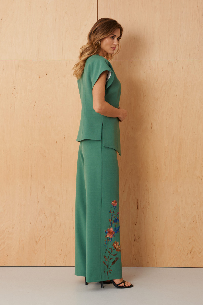 | 46 | Жакет: Длина изделия - 58,5см, Ширина плеча - 25,5см, Ширина по груди - 48см, Ширина по низу - 52,5см, Ширина рукава - 24,5см; Брюки: Высота посадки - 28см, Длина брюк без пояса - 105,5см, Длина по внутреннему шву - 83,5см, Ширина брючин сверху - 68,5см, Обхват брюк по низу - 62,5см, Ширина по бедрам - 51,5см, Ширина по талии - 40,5см; |