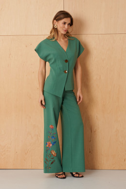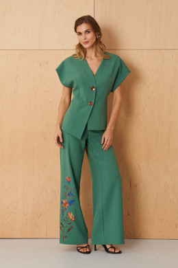 | 54 | Жакет: Длина изделия - 59,5см, Ширина плеча - 28см, Ширина по груди - 56см, Ширина по низу - 60,5см, Ширина рукава - 26,5см; Брюки: Высота посадки - 29,5см, Длина брюк без пояса - 106,5см, Длина по внутреннему шву - 83,5см, Ширина брючин сверху - 77,5см, Обхват брюк по низу - 67см, Ширина по бедрам - 59,5см, Ширина по талии - 49,5см; |