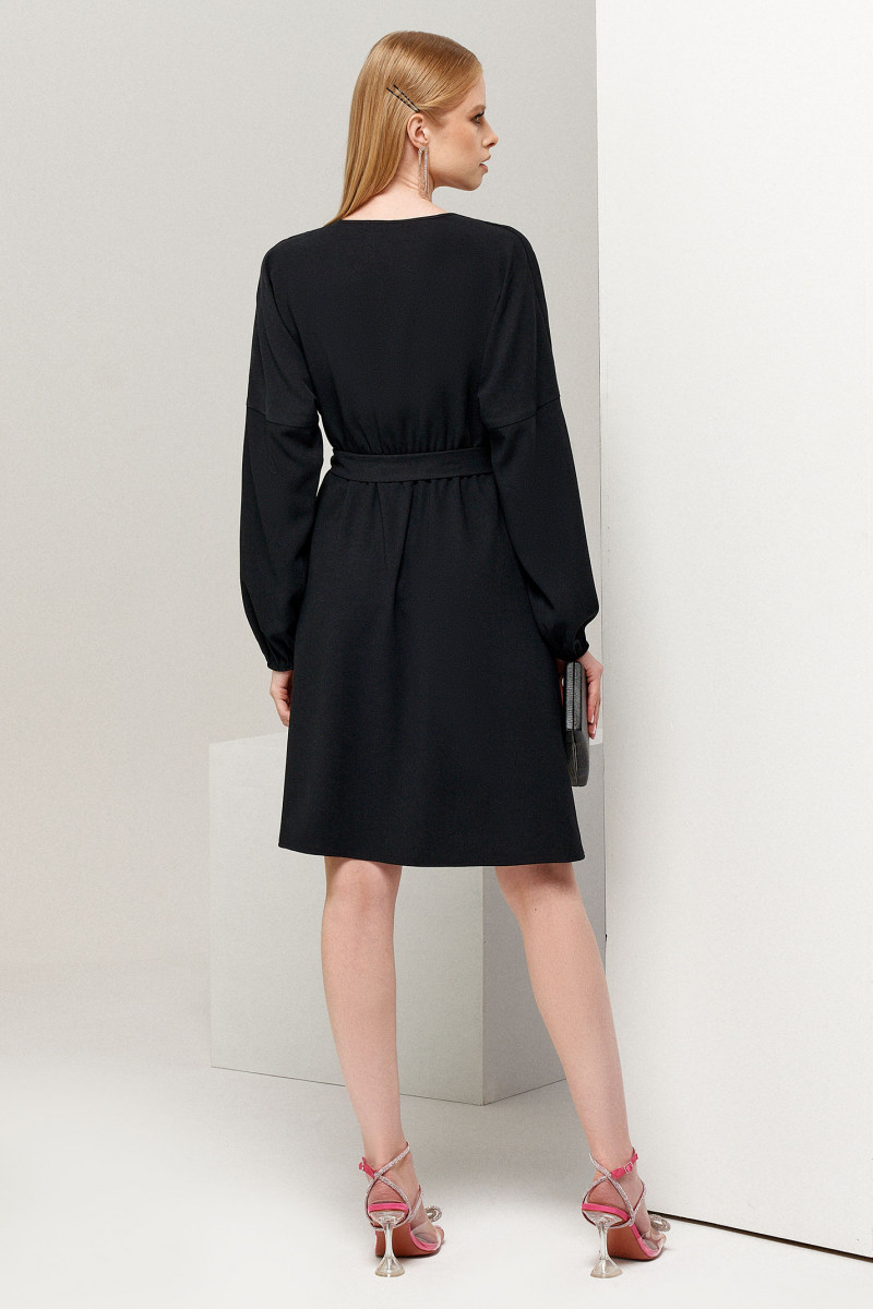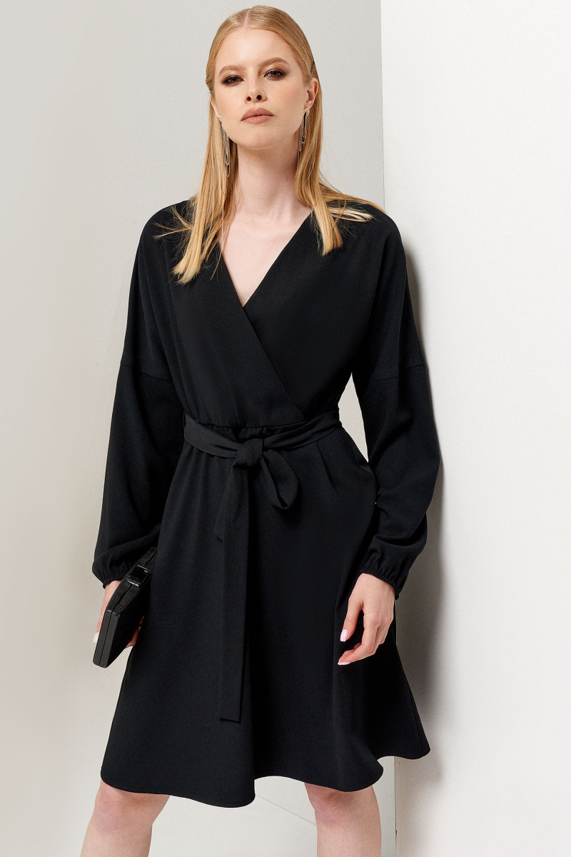 Платье женское короткое позволит вам покорить окружающих своей элегантностью и чувством стиля. Особенность данного предмета гардероба – в его универсальности. Он прекрасно выполнит функцию деловой одежды для офиса или наряда для романтической встречи, похода в театр. Женское трикотажное платье имеет длину до колена. Отрезная по талии модель дополнена тонкими шлевками и поясом из текстиля, аналогичного основной ткани. Крой приталенный, с глубоким V-образным вырезом, имитирующим запах. Длинный рукав-реглан со спущенной линией плеча, собран на запястьях на резинку. Вы можете купить женское вискозное платье в размерах 42-48 по доступной цене.