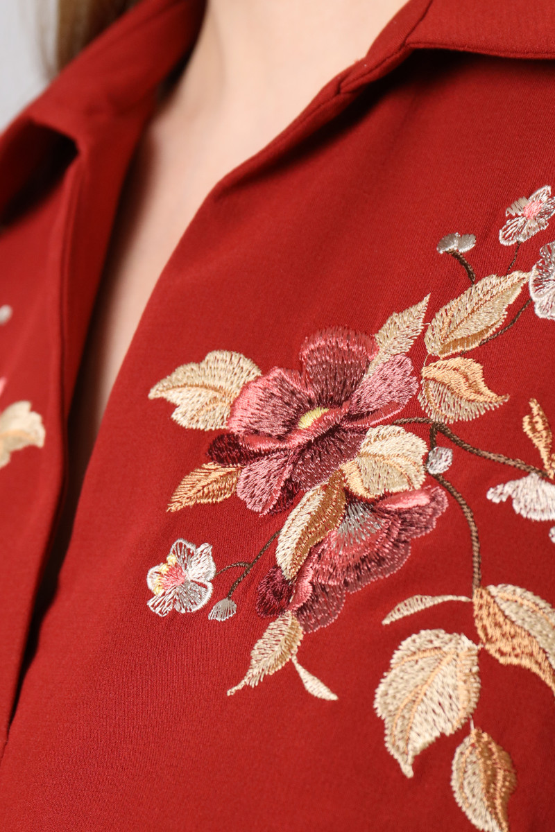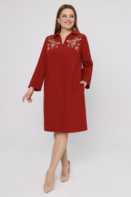 Стильное, платье с в минималистичном стиле с дизайнерской вышивкой. Вышивка придаёт нарядность платью и является изюминкой. Рукав ¾ , укороченный. Платье полуприлегающего силуэта с V-вырезом горловины. Воротник на стойке, Длина до середины колена. Однотонность и сдержанный крой изделия позволяют экспериментировать с аксессуарами, дополняя платье яркими акцентами. Платье на подкладке длиной до середины колен, подойдет для демисезонного гардероба. Будет уместно для похода на работу, деловую встречу, торжественное мероприяти так и для любого светского мероприятия. Вы можете заказать женское платье большого размера 48-56 по выгодной цене.