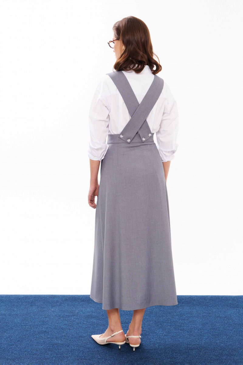 Сарафан женский из смесовой ткани для повседневной носки. Сарафан со съемным верхом. Жилет имеет центральную бортовую застежку на одну обметанную петлю и одну пуговицу. Жилет крепиться на пояс юбки с застежкой на обметанные петли и пуговицы. Юбка чуть расширена к низу. Верхний срез юбки обработан притачным поясом с застежкой на крючок, а также в среднем шве имеется застежка на тесьму-молнию. Заднее полотнище юбки имеет две талиевые вытачки. В боковых швах имеются потайные прорезные карманы. Данный сарафан очень многофункциональный, вы можете носить отдельно юбку и собирать стильные образы. Сарафан будет удобный и практичный в носке, а большое содержание вискозы подарит комфорт.