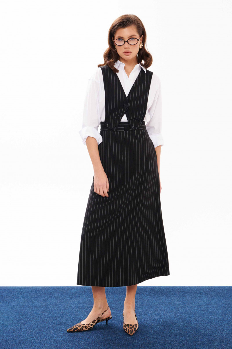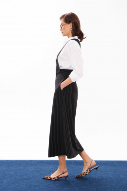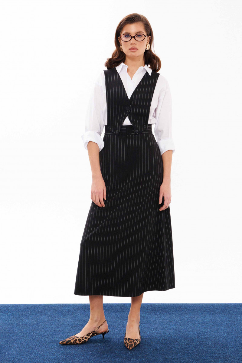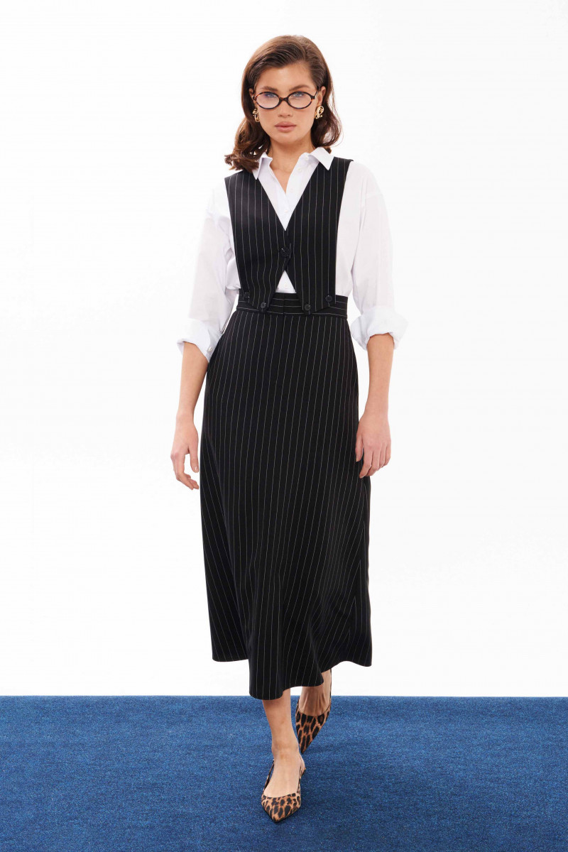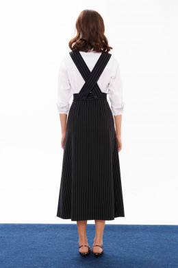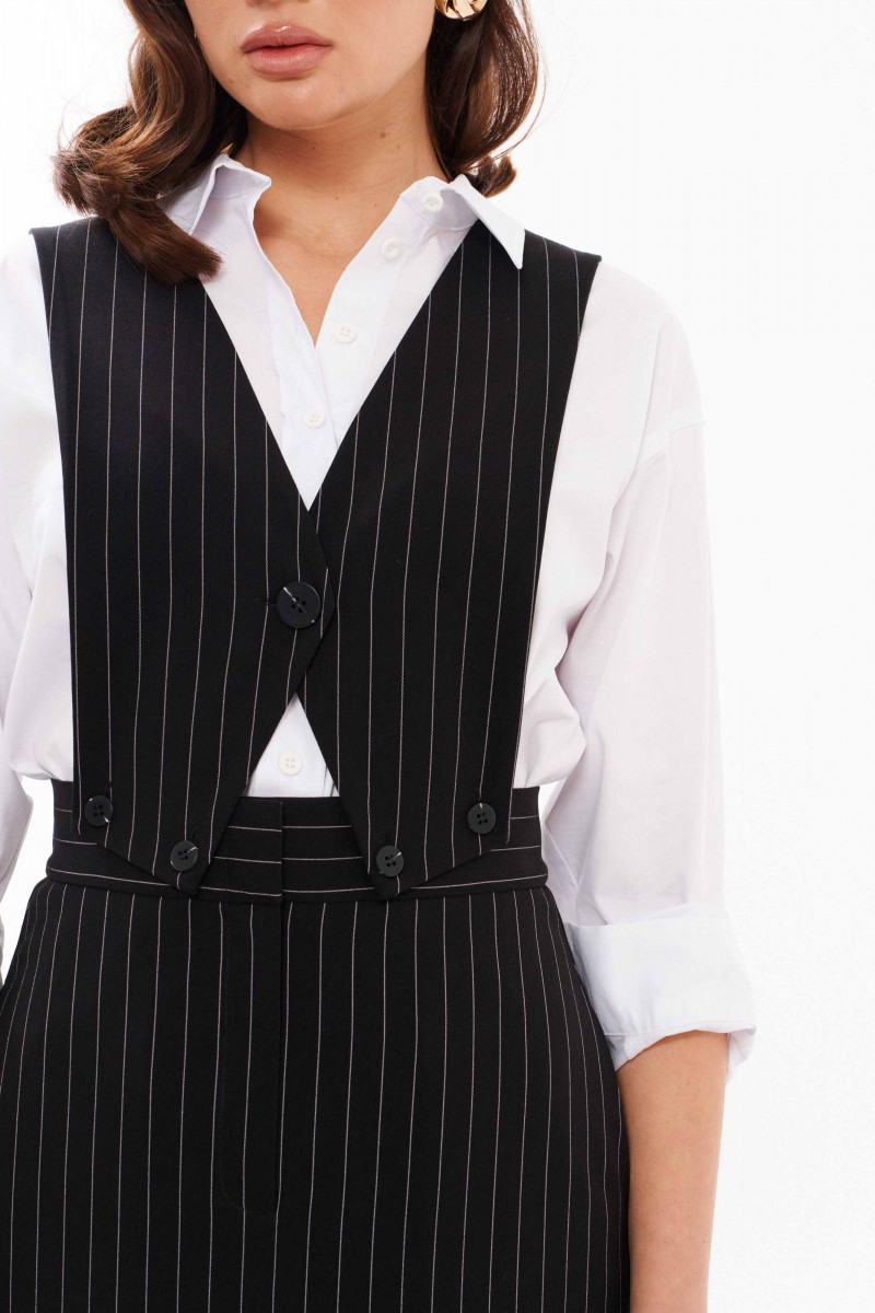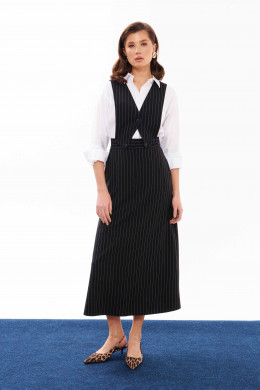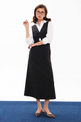 Сарафан женский из смесовой ткани для повседневной носки. Сарафан со съемным верхом. Жилет имеет центральную бортовую застежку на одну обметанную петлю и одну пуговицу. Жилет крепиться на пояс юбки с застежкой на обметанные петли и пуговицы. Юбка чуть расширена к низу. Верхний срез юбки обработан притачным поясом с застежкой на крючок, а также в среднем шве имеется застежка на тесьму-молнию. Заднее полотнище юбки имеет две талиевые вытачки. В боковых швах имеются потайные прорезные карманы. Данный сарафан очень многофункциональный, вы можете носить отдельно юбку и собирать стильные образы. Сарафан будет удобный и практичный в носке, а большое содержание вискозы подарит комфорт.