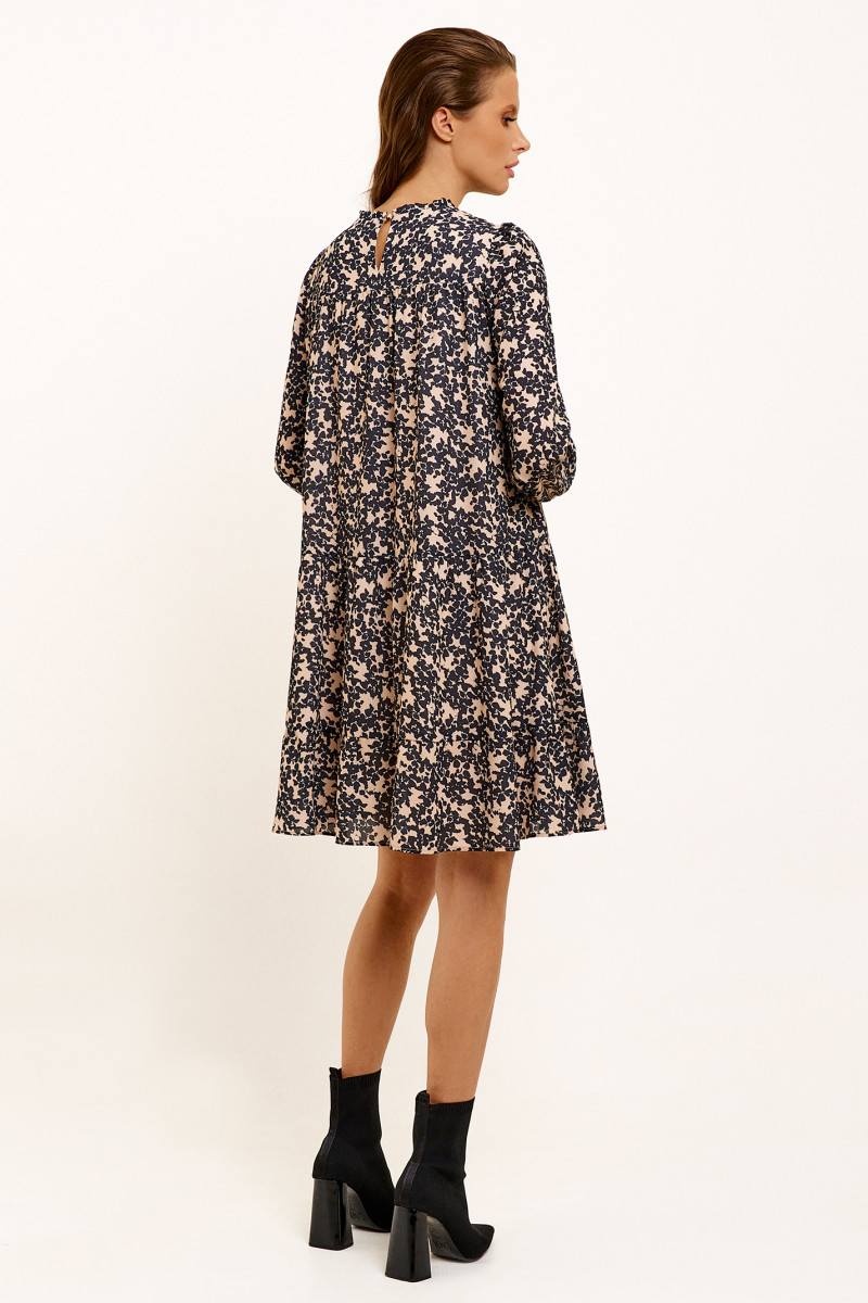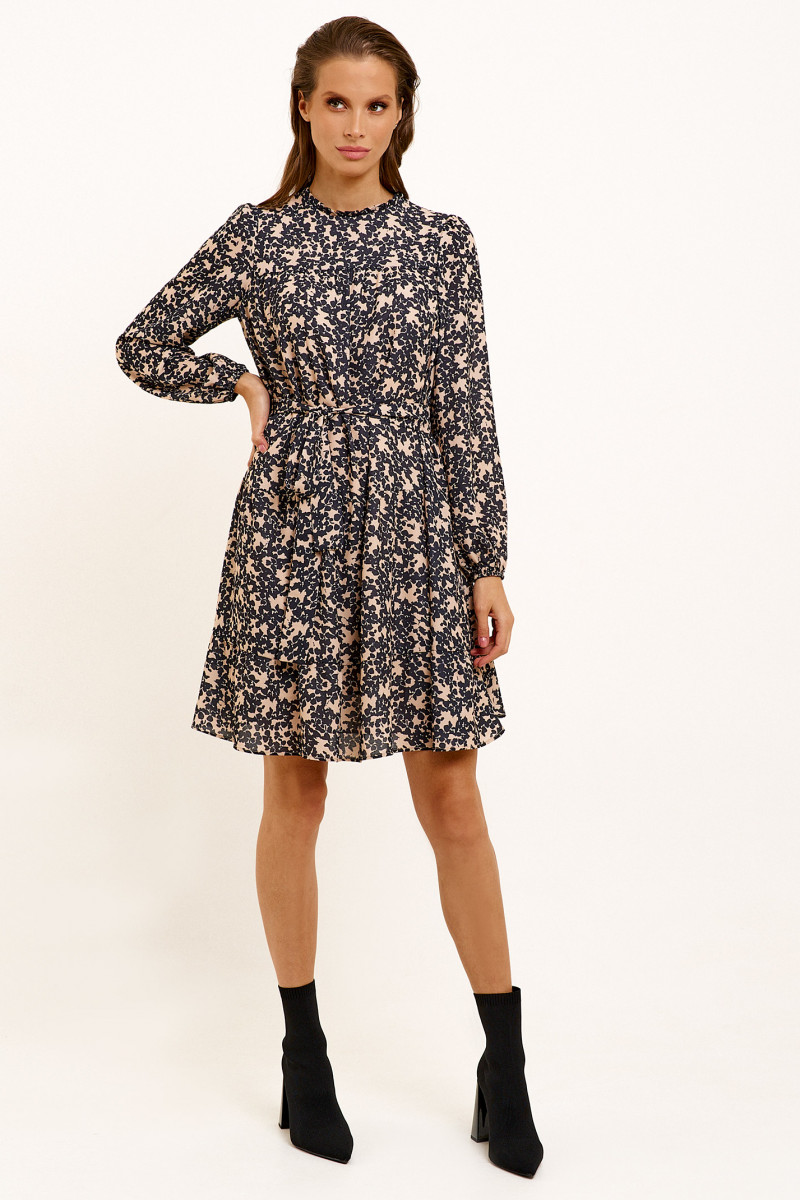 Платье с воланом по низу, на талии можно завязать пояс. Рукав втачной длинный, по низу вставлены резинки. По горловине отрезная сборка. Стильное платье на каждый день. Повседневное платье - это красивая женская одежда на каждый день. Стильное платье на любой сезон сделано из мягкой ткани, которая пропускает воздух и приятно окутывает. Нарядное платье подойдёт для праздничного мероприятия, для повседневной носки, для встречи с друзьями или взять с собой в отпуск. Осеннее платье офисное подойдёт на каждый день, так как в нем чувствуется комфорт. Деловое платье с длинным рукавом не стесняет движений и подчёркивает достоинства фигуры. Платье женское можно надевать на работу, деловую встречу, подойдет для отдыха и как домашняя одежда. Вечернее платье женское подойдет для беременных и для полных женщин, а также прекрасно смотрится с любой обувью.