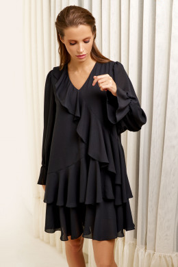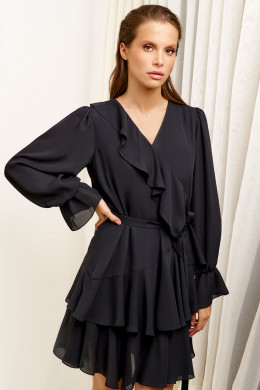 Женское платье - универсальный предмет гардероба, который вы сможете надеть на дружескую или романтическую встречу, торжественное мероприятие, обычную прогулку. Лаконичный дизайн и строгий цвет модели позволяют комбинировать ее с украшениями, яркими аксессуарами. Короткое платьев сочетании с обувью на каблуке зрительно увеличит ваш рост.Нарядное платье с пышными притачными воланами не обтягивает тело, можно подчеркнуть тонкую талию поясом, который идет в комплекте. Платье открывает стройные ножки. Оно смотрится элегантно и женственно, придает образу утонченность.
