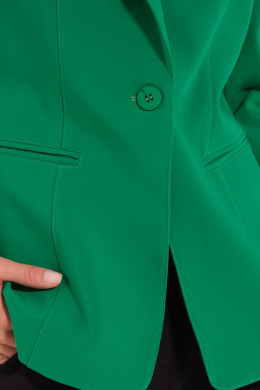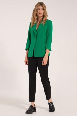 Жакет на пуговице поможет вам выглядеть эффектно и элегантно в любой ситуации. Его уместно надеть на работу, в гости, на деловую и дружескую встречу, деловое мероприятие. Модель составляет гармоничные сеты с брюками, джинсами, юбками. Классический, слегка приталенный крой, хорошо подчеркнет женственность вашей фигуры. Жакет с двубортным воротником привлекает внимание глубоким V-вырезом горловины, длиной рукава – 3/4. Осенний жакет полуприлегающего силуэта пошит с прорезными карманами и комфортной подкладкой. Приняв решения купить пиджак женский, вы обеспечите себе тепло и комфорт в прохладную погоду межсезонья.