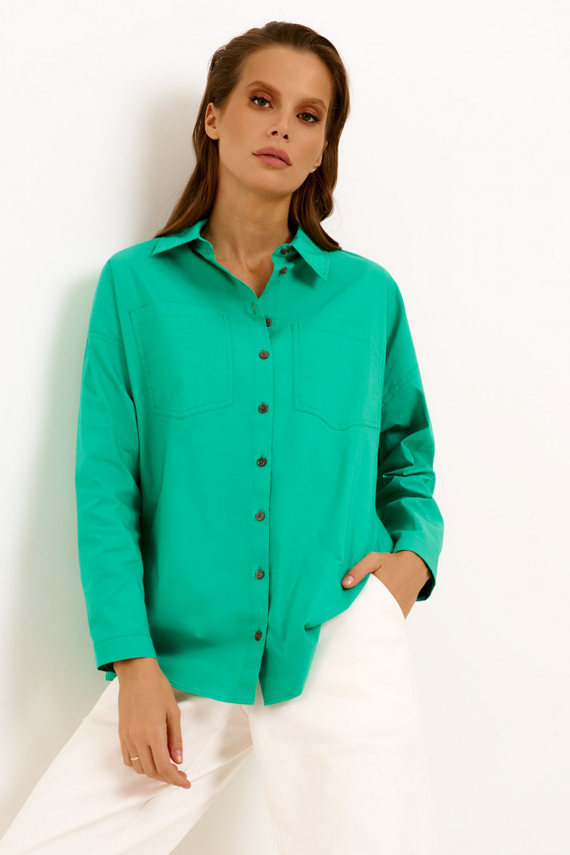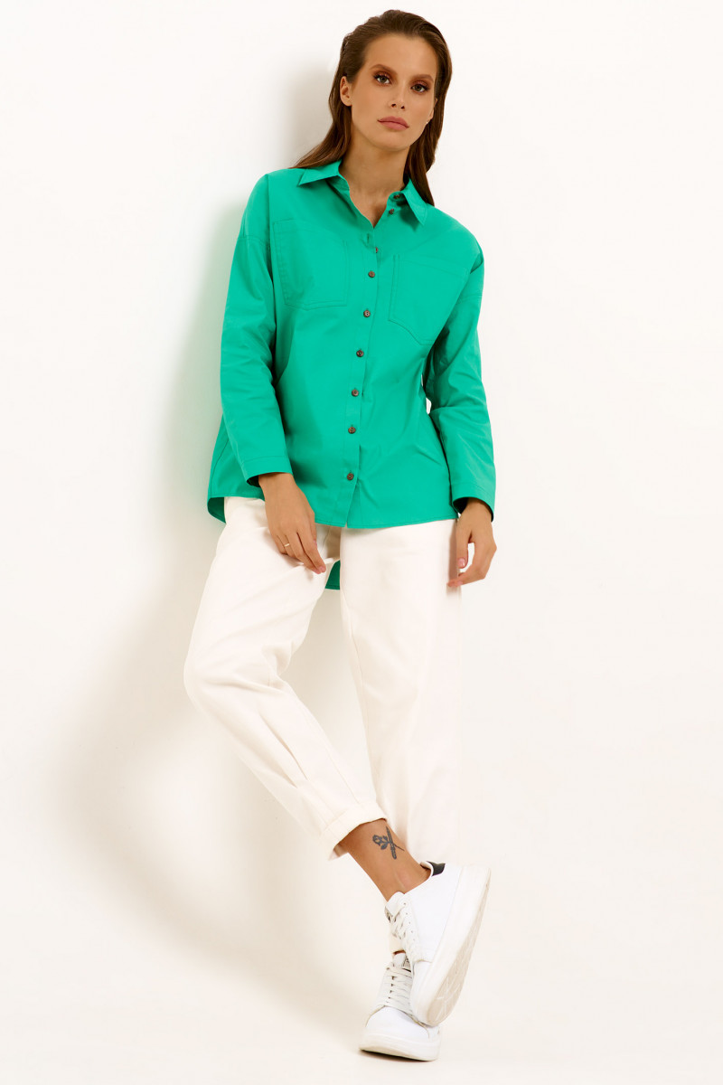 Рубашка, стильная женская блузка с длинным рукавом докажет вам, что консервативный стиль легко сочетается с молодежным драйвом. Строгость рубашечного кроя компенсируют мягко закругленный низ и декоративные элементы, задающие динамику в сдержанном образе. Яркая блузка выполнена в прямом фасоне из хлопковой ткани, к которой добавлен эластан и полиэстер. Ткань сохраняет свойства натурального хлопка, приобретая износоустойчивость и эластичность синтетических волокон. Блузка-рубашка женская хорошо пропускает воздух, впитывает влагу, быстро сохнет и немного тянется. Рубашка женская классическая дополнена отложным воротником и длинным рукавом на манжетах, застегивающихся при помощи пуговиц. Бочок соединяет перед и удлиненную спинку с проложенной по центру декоративной планкой. Хлопковая рубашка женская застегивается на потайные пуговицы. Центральная планка и нагрудной карман украшены принтом - надписью, изображенной изящным шрифтом. Рубашка женская - удобная вещь для повседневной носки.