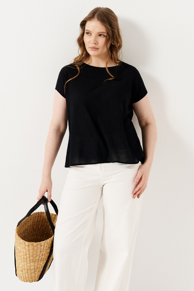 | 44 | Блузка: Длина изделия - 58см, Ширина плеча - 23,5см, Ширина по груди - 53см, Ширина по низу - 59см; |