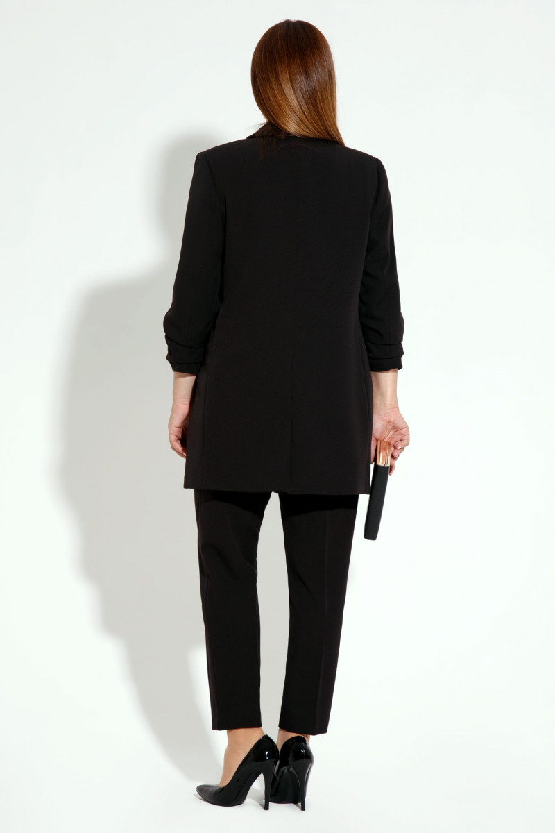 Пиджак женский удлиненный пошит из эластичной, приятной на ощупь ткани с гладкой поверхностью. Подкладка изготовлена из натурального вискозного полотна. Жакет женский не мнется, не деформируется после стирки, не теряет насыщенности цвета.