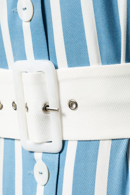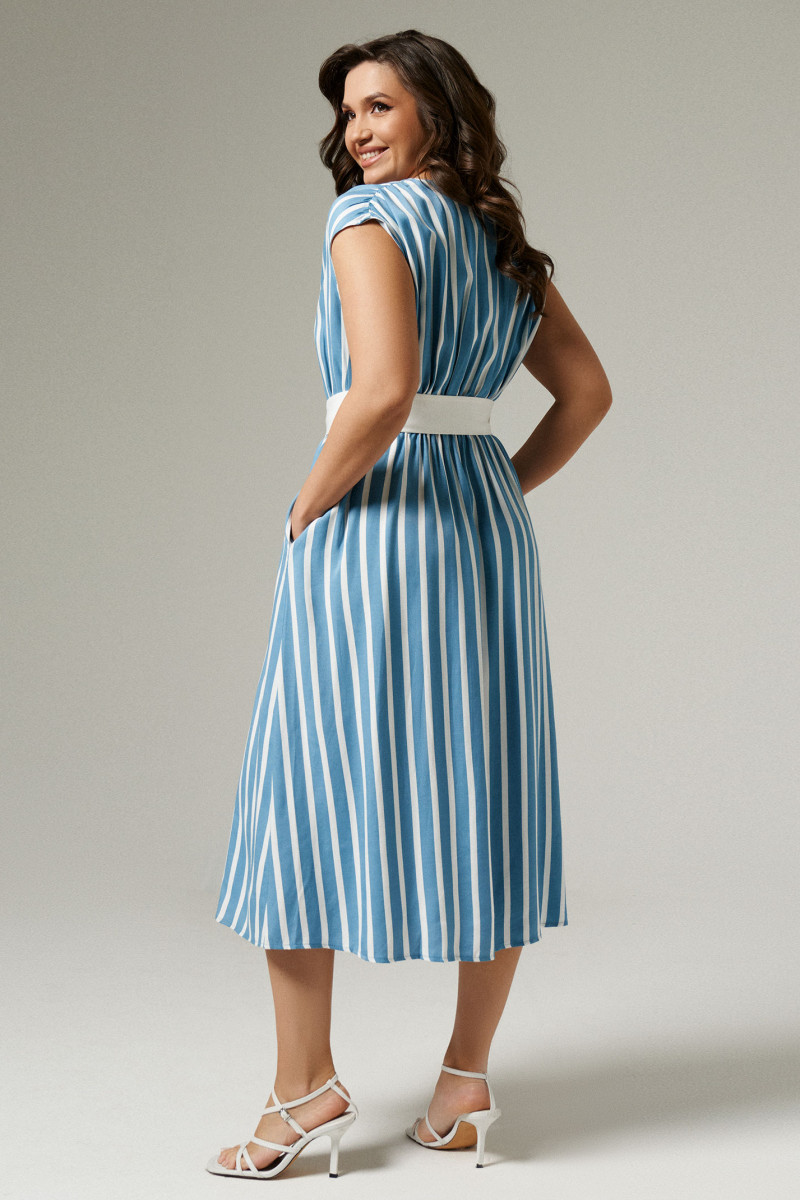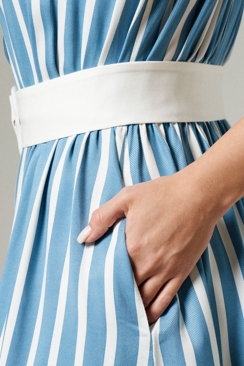 Легкое платье сарафан – незаменимый элемент гардероба для комфортного отдыха. Оно подходит для повседневной носки в жаркие дни и пляжного отдыха. Мягкая вискозная ткань максимально пропускает воздух к телу, без эффекта сауны. Платье на пуговицах по центральной планке удобно снимать и надевать на пляже. Отрезное по линии пояса изделие скроено с широкими бретелями, без рукавов, с прорезными карманами. Приталенный А-силуэт обеспечивает хорошую посадку по фигуре, делая акцент на талии. V-образный вырез горловины и вертикальные полосы принта визуально увеличивают рост, стройнят силуэт. Вы можете заказать платье сарафан на лето в размерах 42-50.