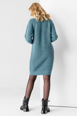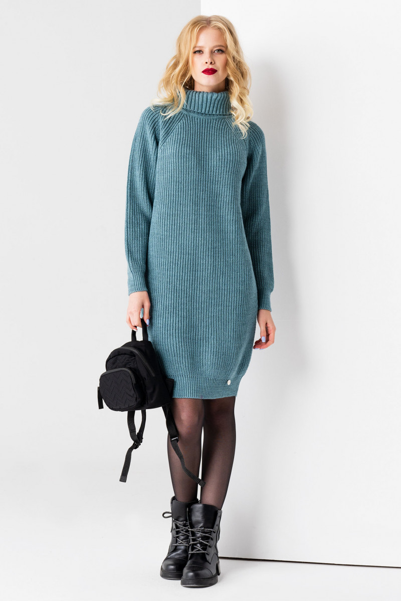 Вязаное платье длиной до коленей с длинными рукавами с широкими манжетами. Модель выполнена из мягкой пряжи на сочетании шерсти и акрила. Воротник - высокая стойка с отворотом.Модель фасона платья подразумевает свободную посадку. Такое лаконичное теплое платье легко разбавить различными аксессуарами, создавая разнообразные осенние образы.