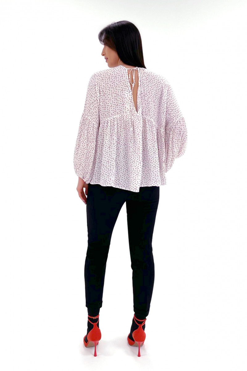 | 46 | Блузка: Длина изделия от высшей плечевой точки до низа - 67см, Длина рукава - 34см, Ширина плеча - 34.4см, Ширина по груди - 75см, Ширина рукава - 24.8см; |