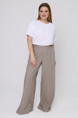 Прямые широкие брюки – удобная одежда, повседневной носки и особых случаев. Стильные брюки для прямые по силуэту. Пояс, дополненном резинкой, что очень удобно. В области боковых швов располагаются прорезные карманы. Отлично сочетается с блузками, футболками, топами, майками, жакетами. Данные брюки пошиты из льняной ткани. Льняная ткань обладает гигроскопичностью, воздухопроницаемостью и подойдёт для жарких дней. Заказывайте летние брюки больших размеров, чтобы пополнить свой сезонный гардероб практичной вещью.