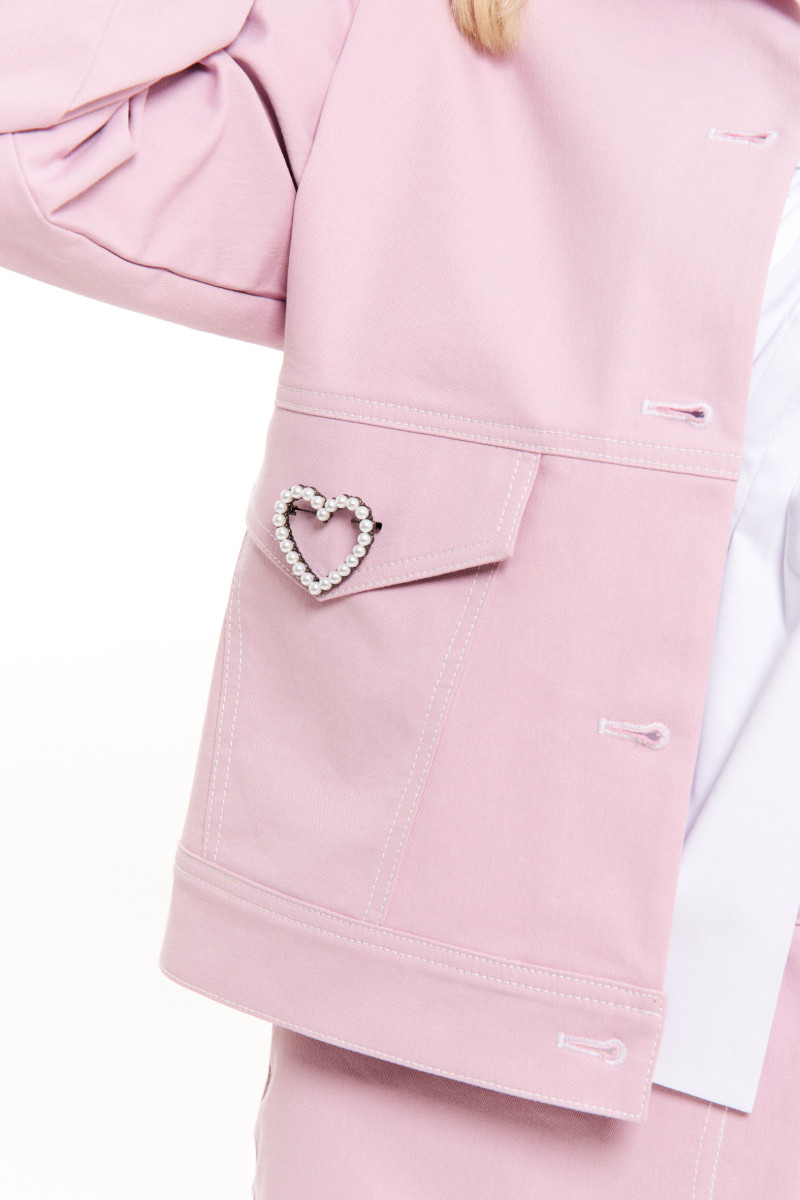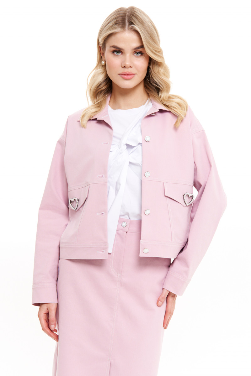 Жакет в нежном розовом цвете придает образу свежести и легкости. Он подходит как для офисных будней, так и для прогулок или встреч с друзьями. Универсальность модели позволяет комбинировать ее с различными аксессуарами и одеждой, создавая новые стильные сочетания. Незаменимый элемент гардероба для тех, кто ценит комфорт, элегантность и универсальность в одном изделии.